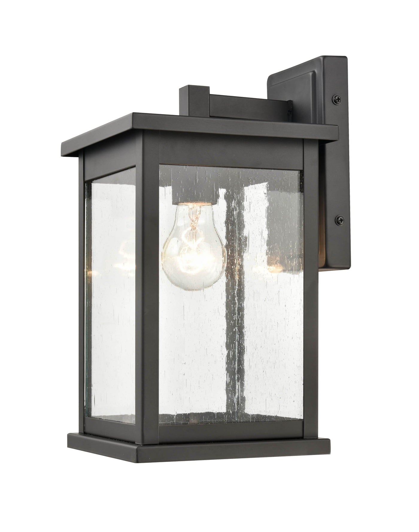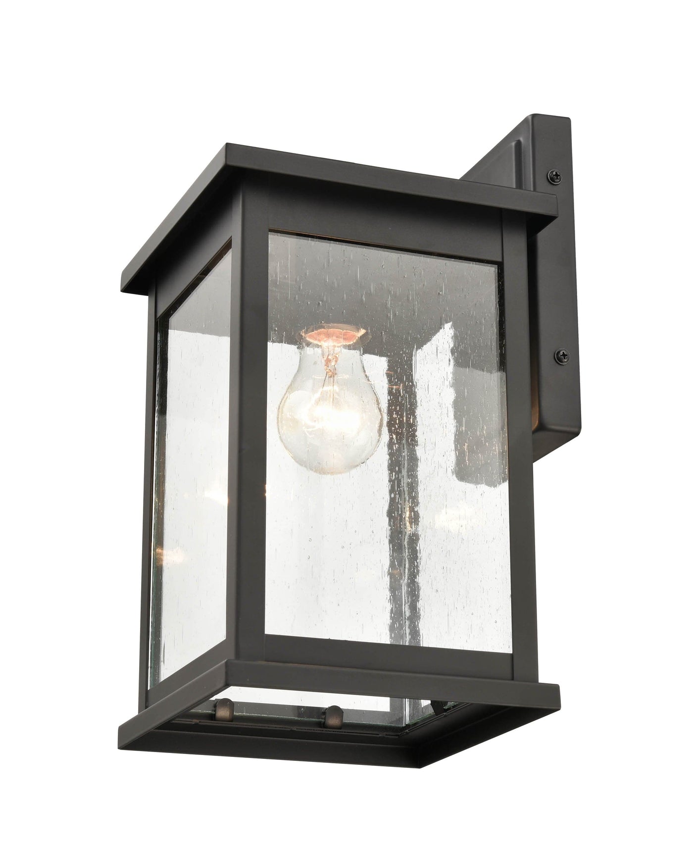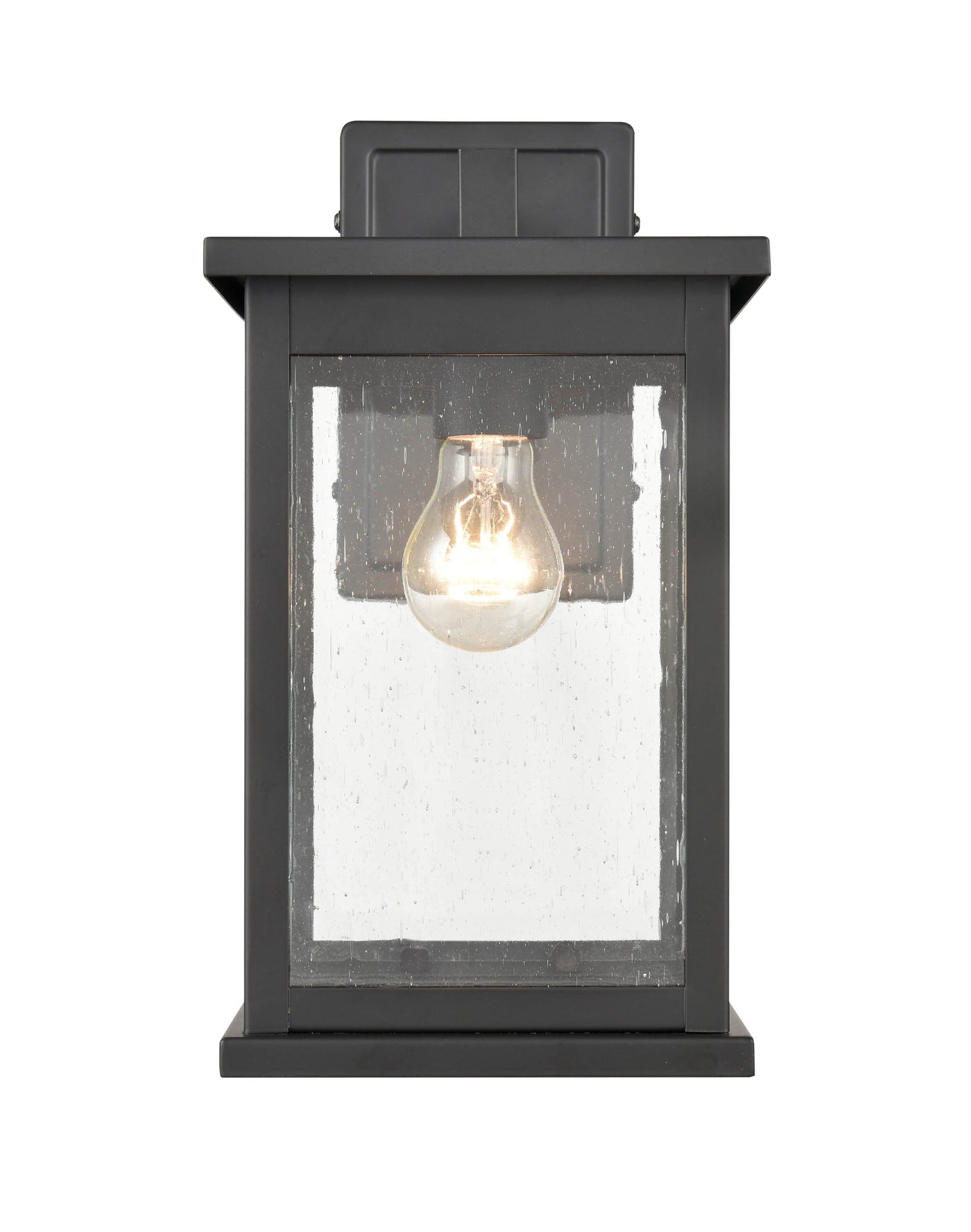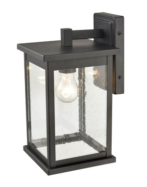Bowton Outdoor Wall Sconce - Powder Coat Black - Clear Seeded Glass - 8.125in. Extension - E26 Medium Base