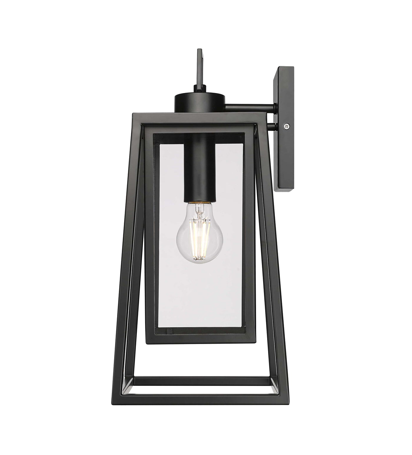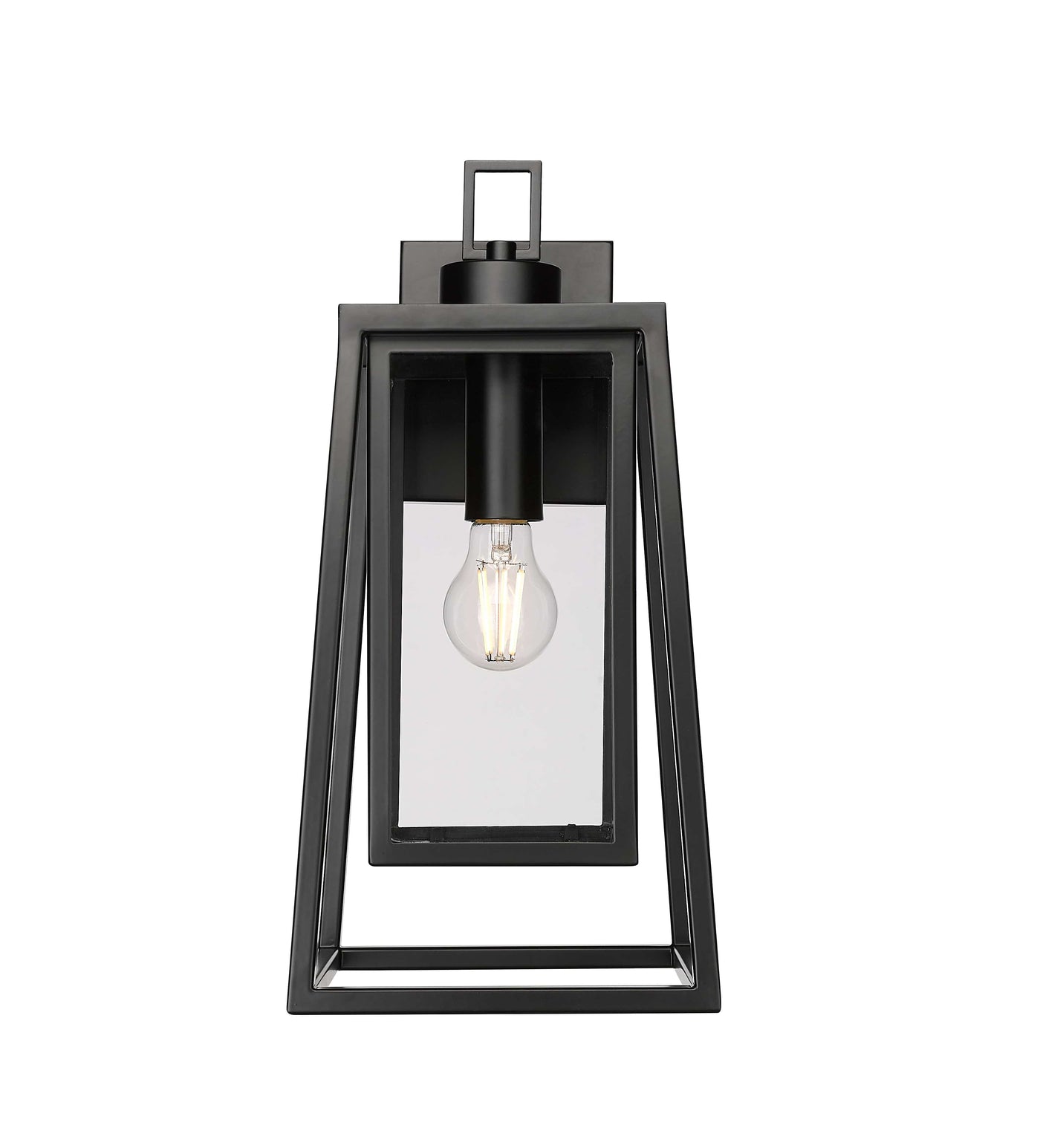 Available as 1 or 2-light sconces and 1-light hanging lanterns, both with clear glass panels, the fixtures are finished in durable powder coat black and are perfect for the front porch, deck, and outdoor walkways.