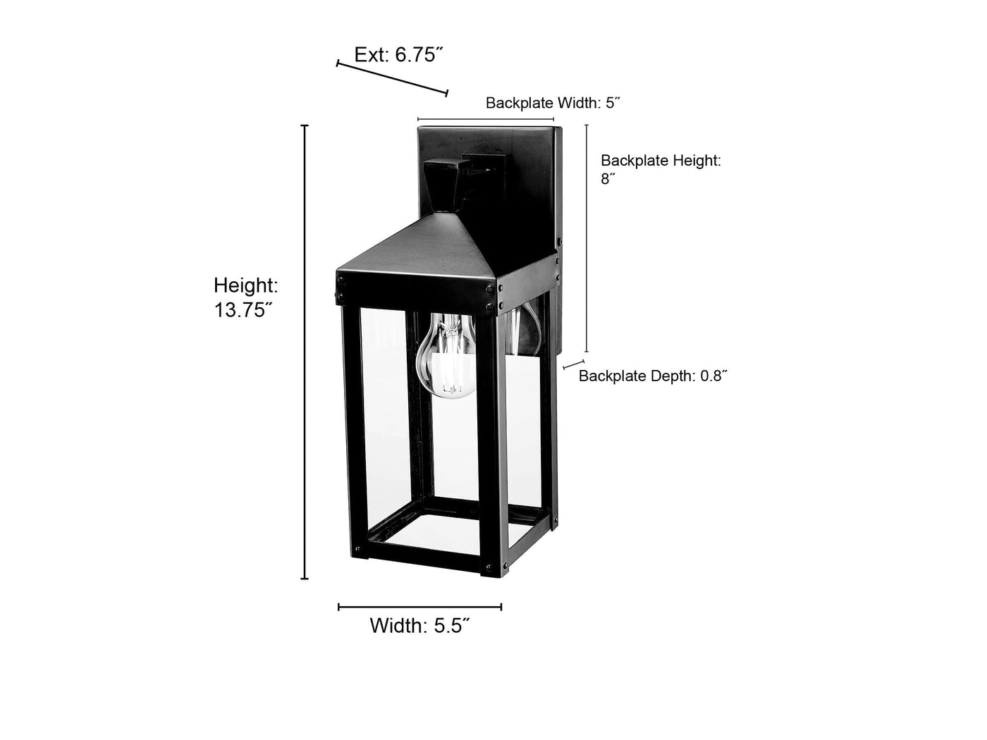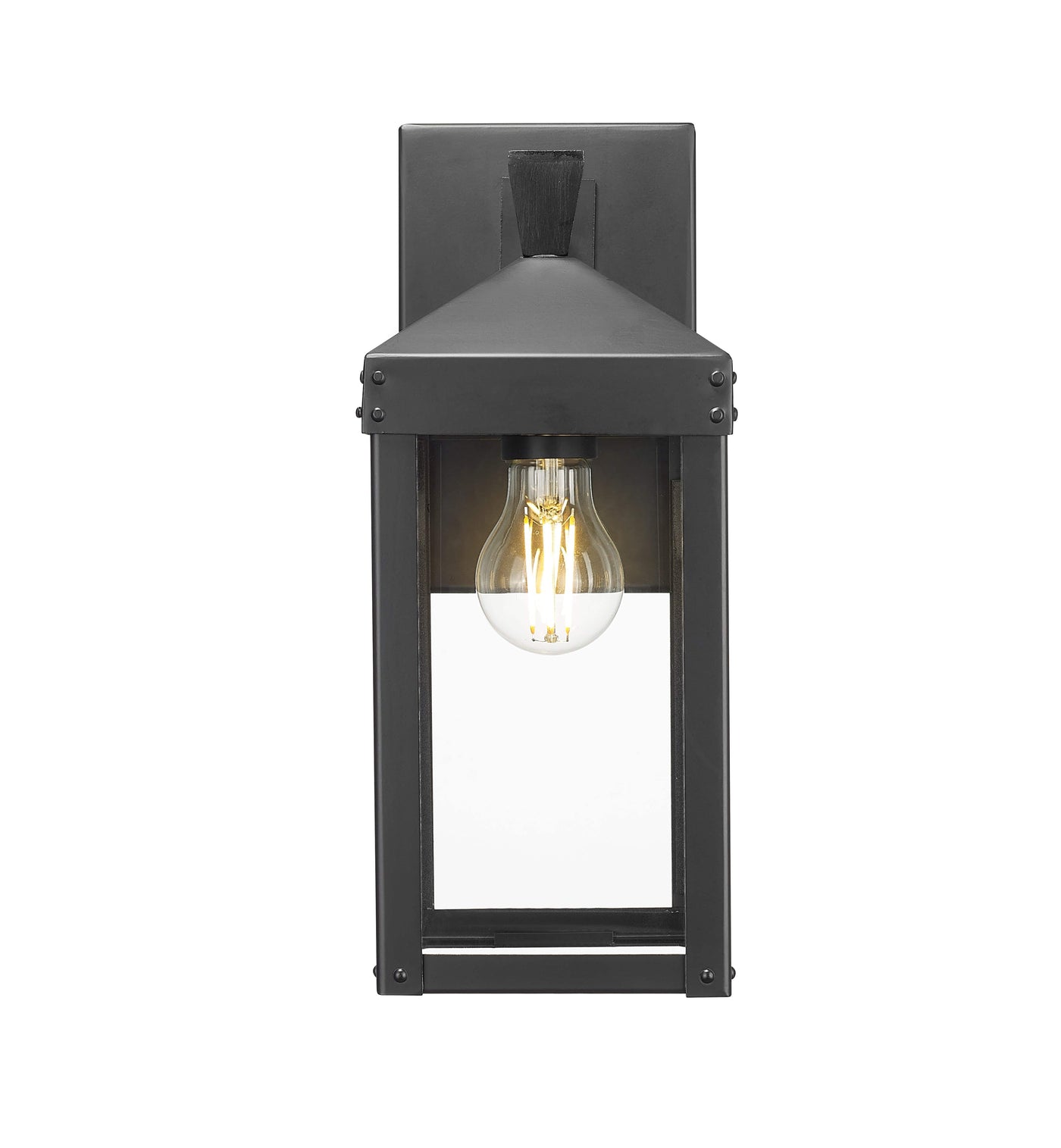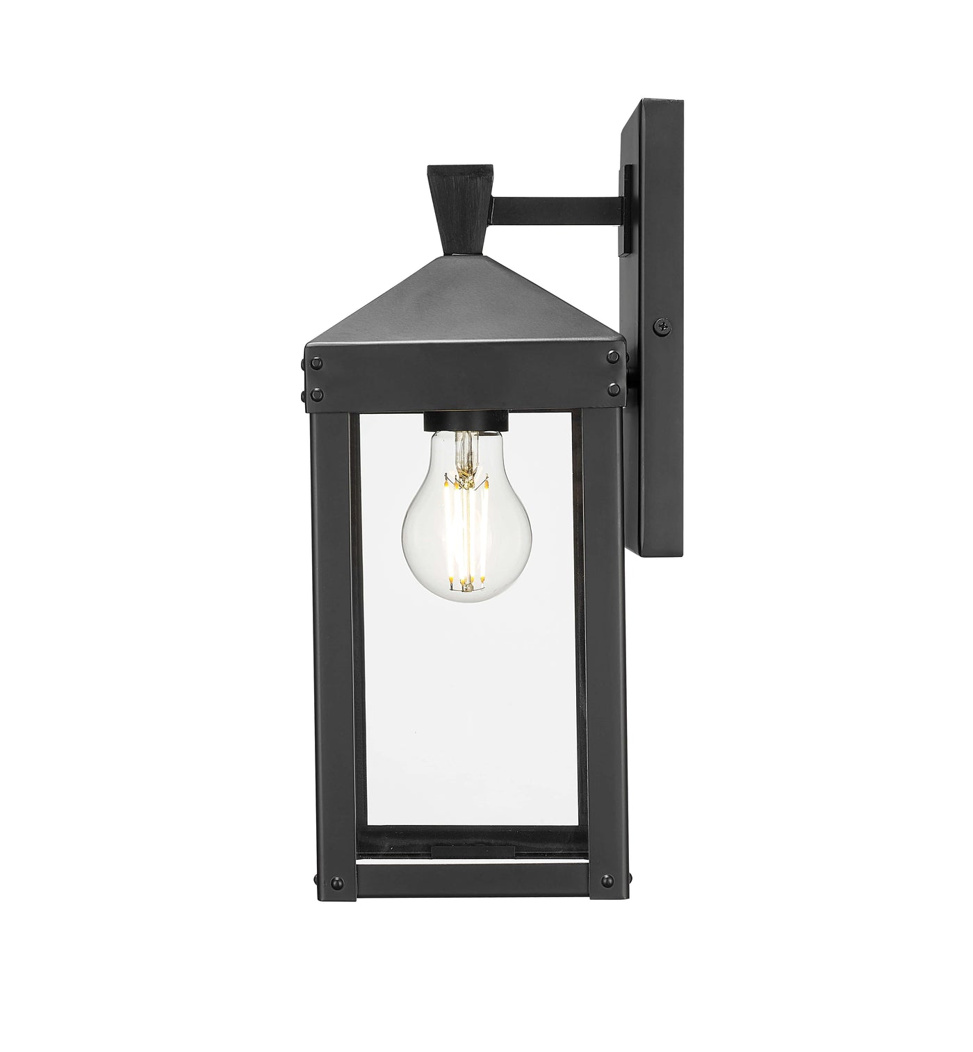 Yates Outdoor Wall Sconce - Powder Coated Black - Clear Glass - 6.75in. Extension - E26 Medium Base