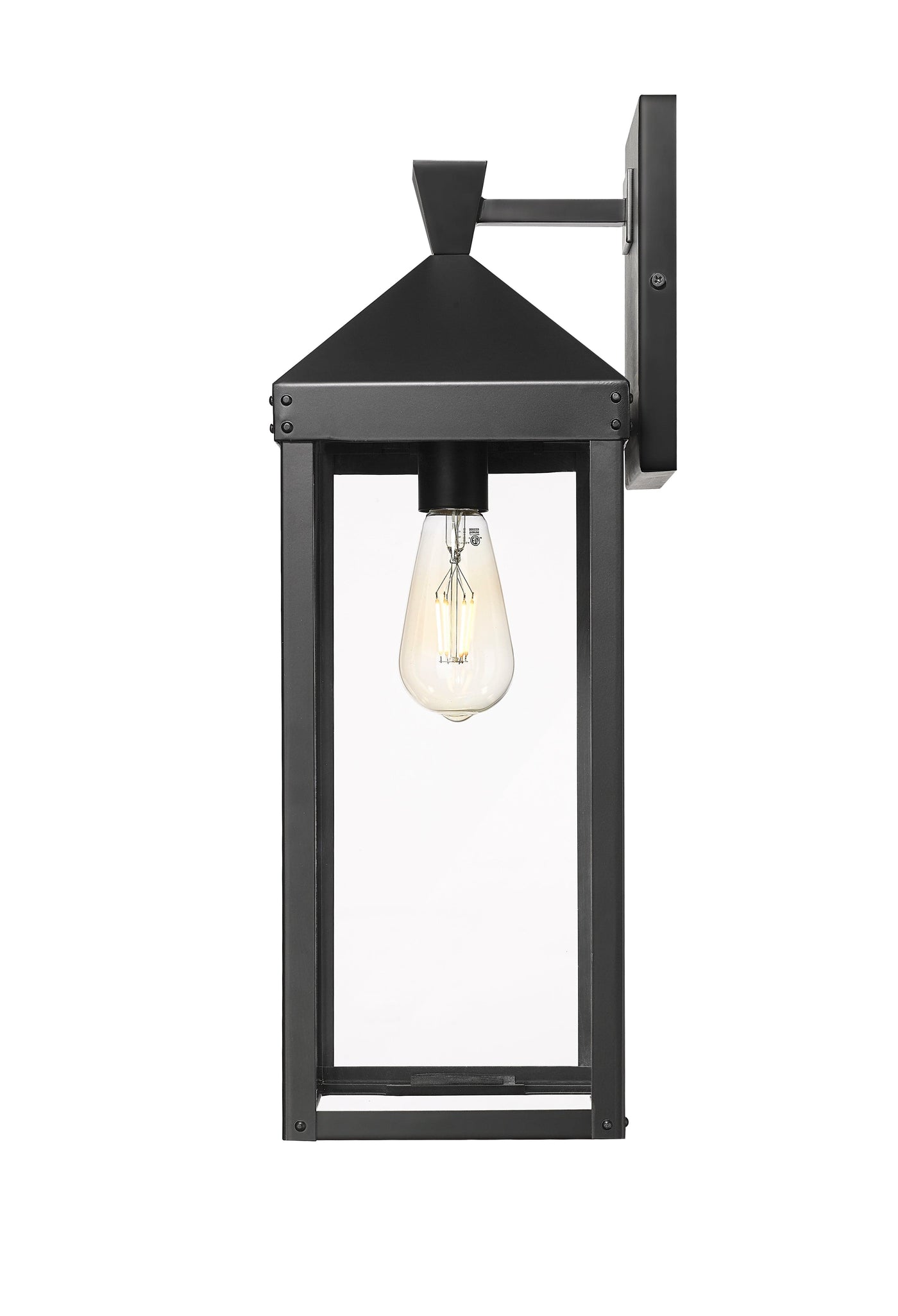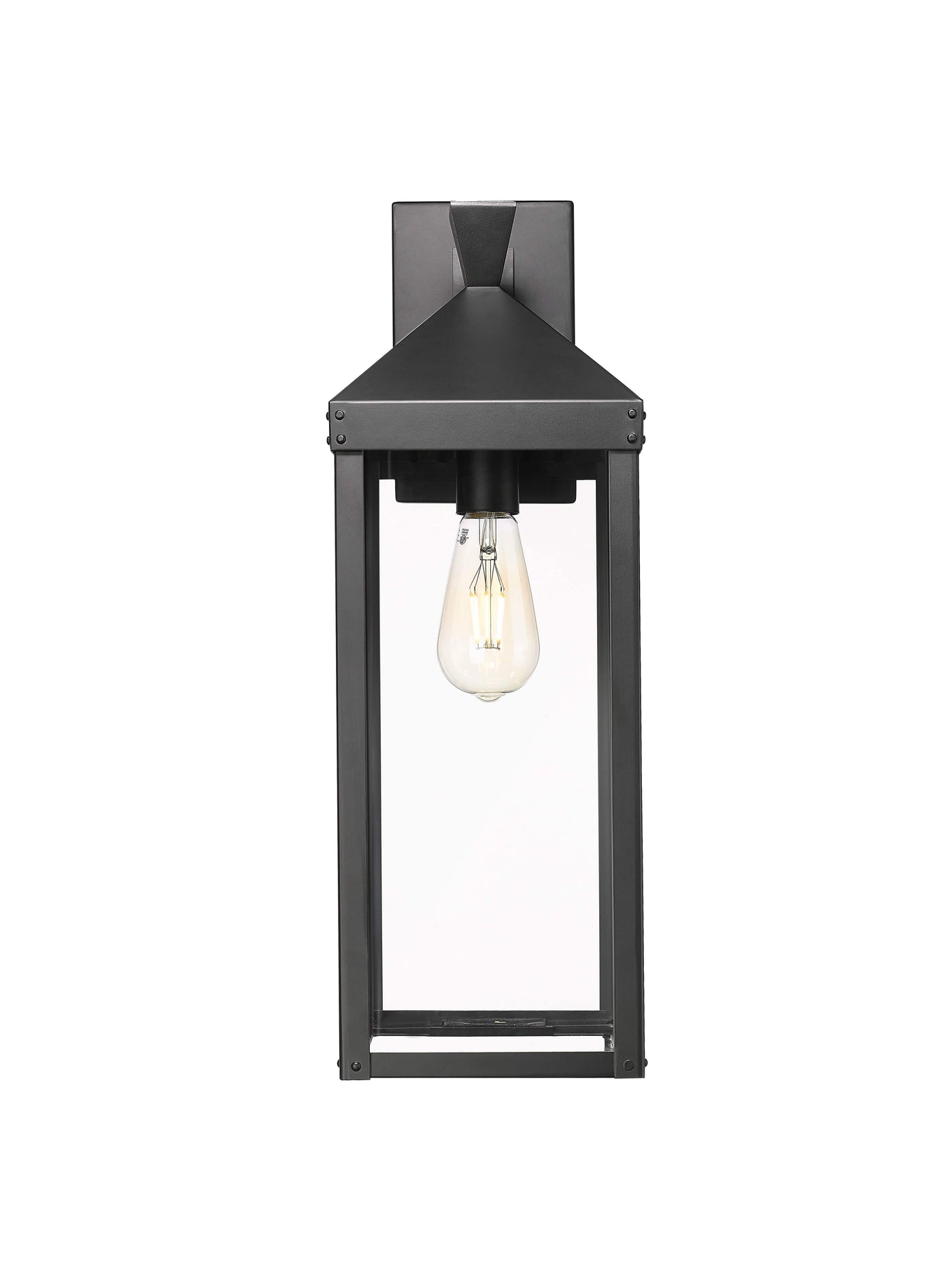 Yates Outdoor Wall Sconce - Powder Coated Black - Clear Glass - 8.25in. Extension - E26 Medium Base
