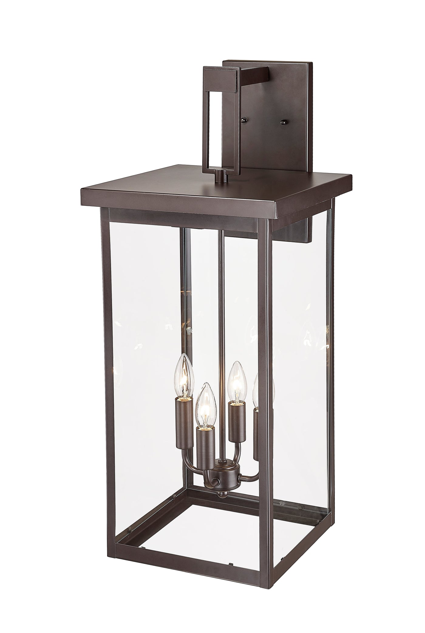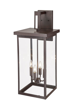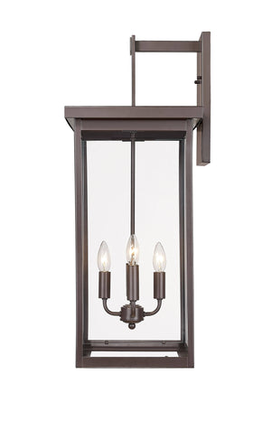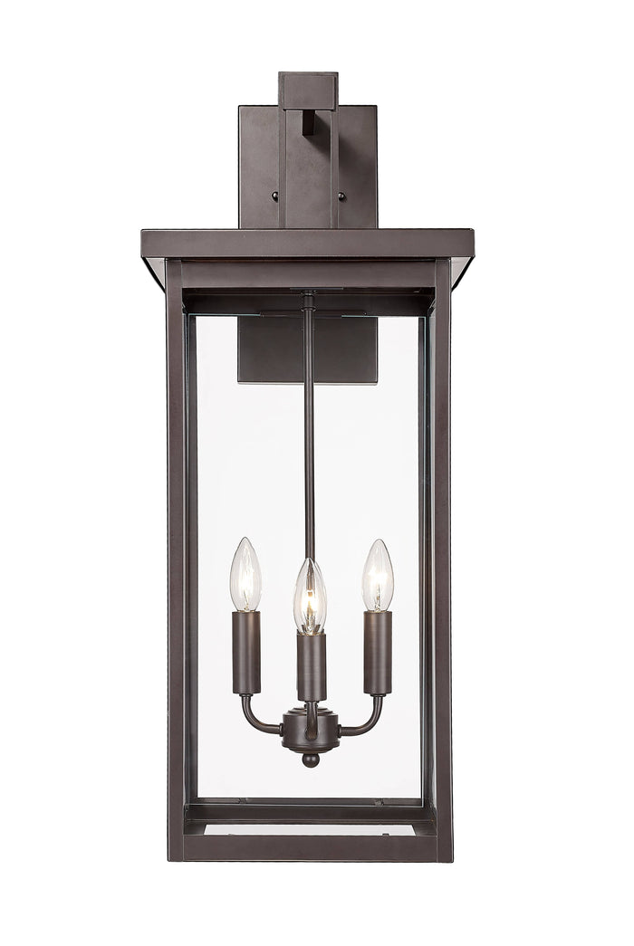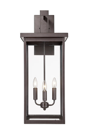 Barkeley Outdoor Wall Sconce - Powder Coated Bronze - Clear Glass - 13in. Extension - E26 Candelabra Base