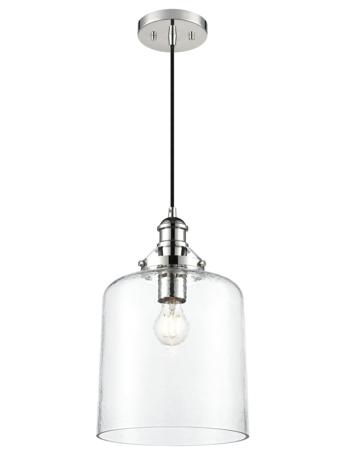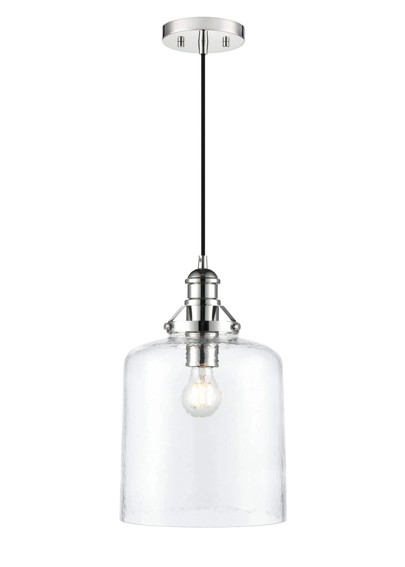 Khrisa Pendant Fixture - Polished Nickel - Clear Hammered Glass - 10in. Diameter - E26 Medium Base