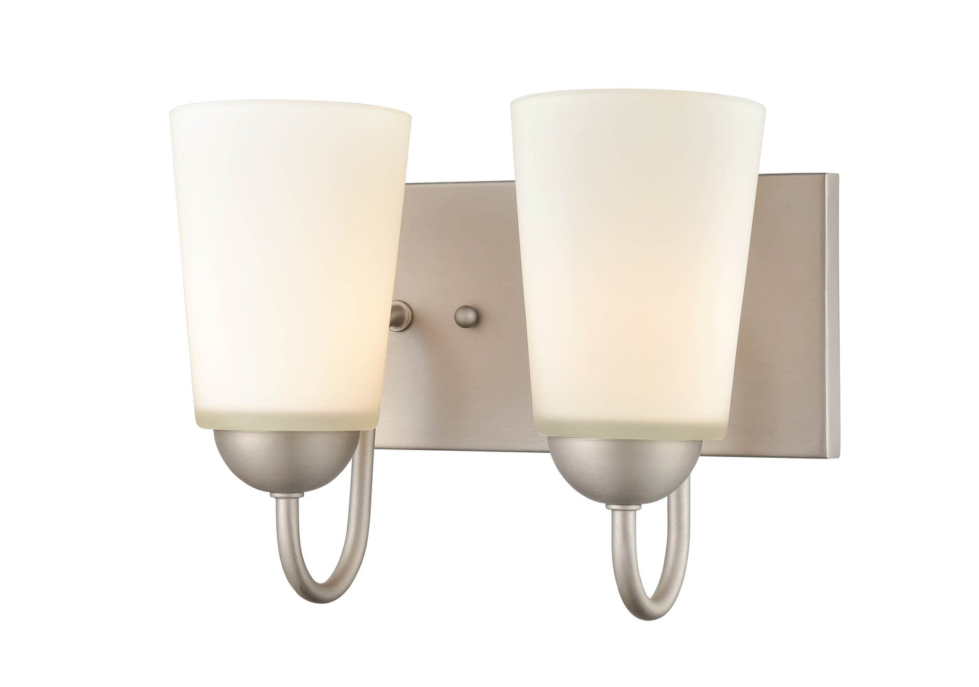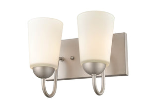 2 Lamps Ivey Lake Vanity Light - Satin Nickel - Etched White Glass - 10in. Wide