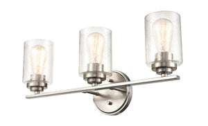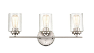 3 Lamps Bathroom Vanity Light - Satin Nickel - Clear Seeded Glass - 22in. Wide