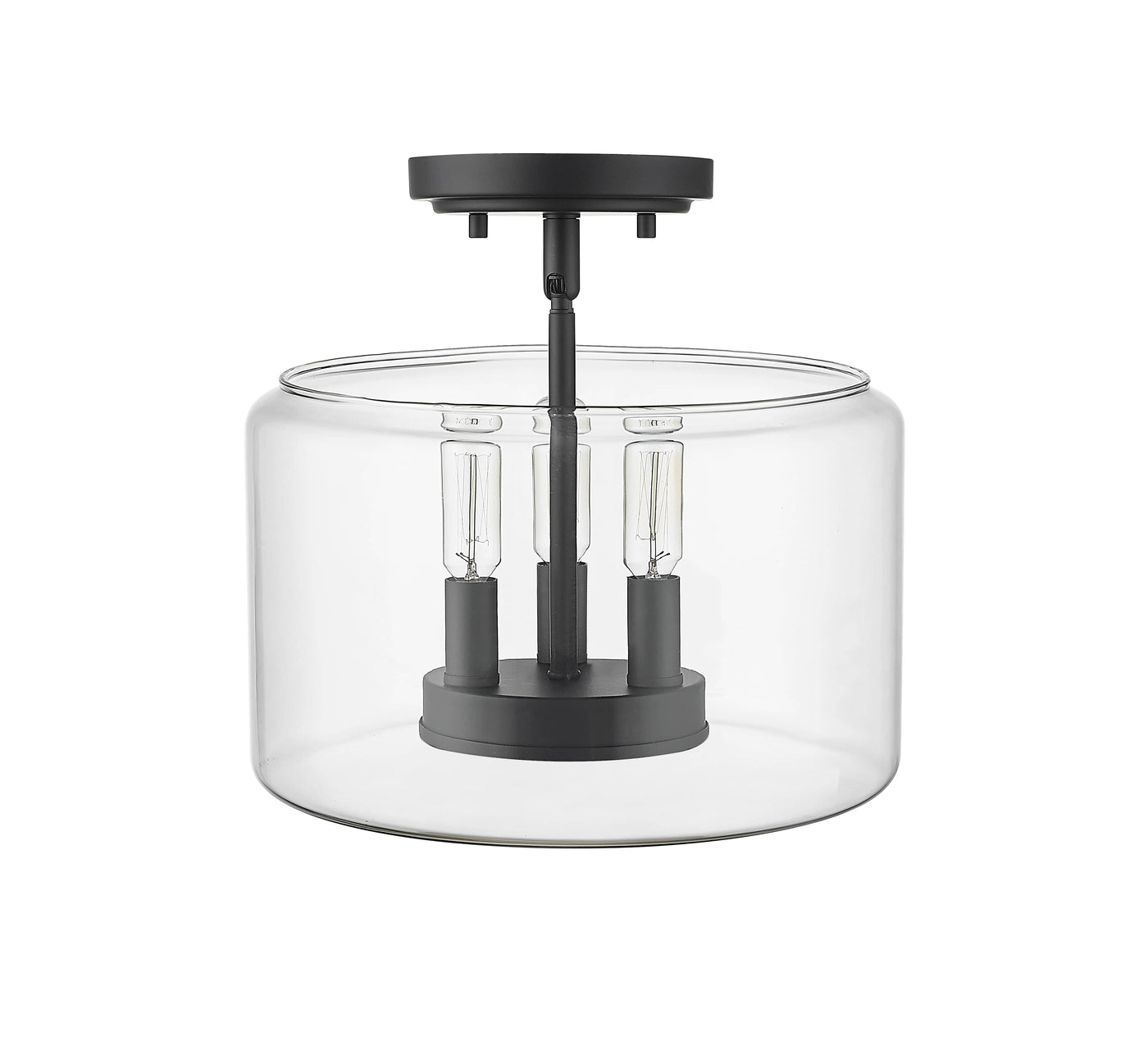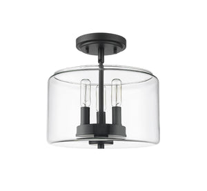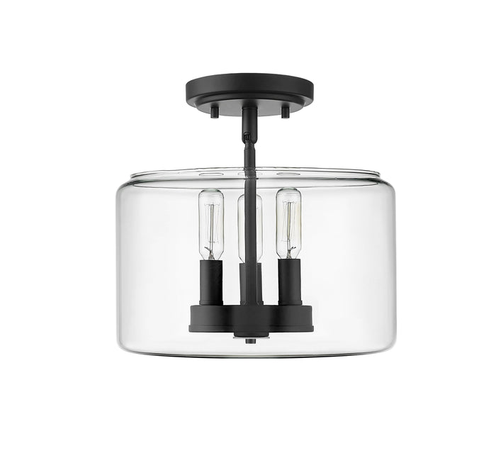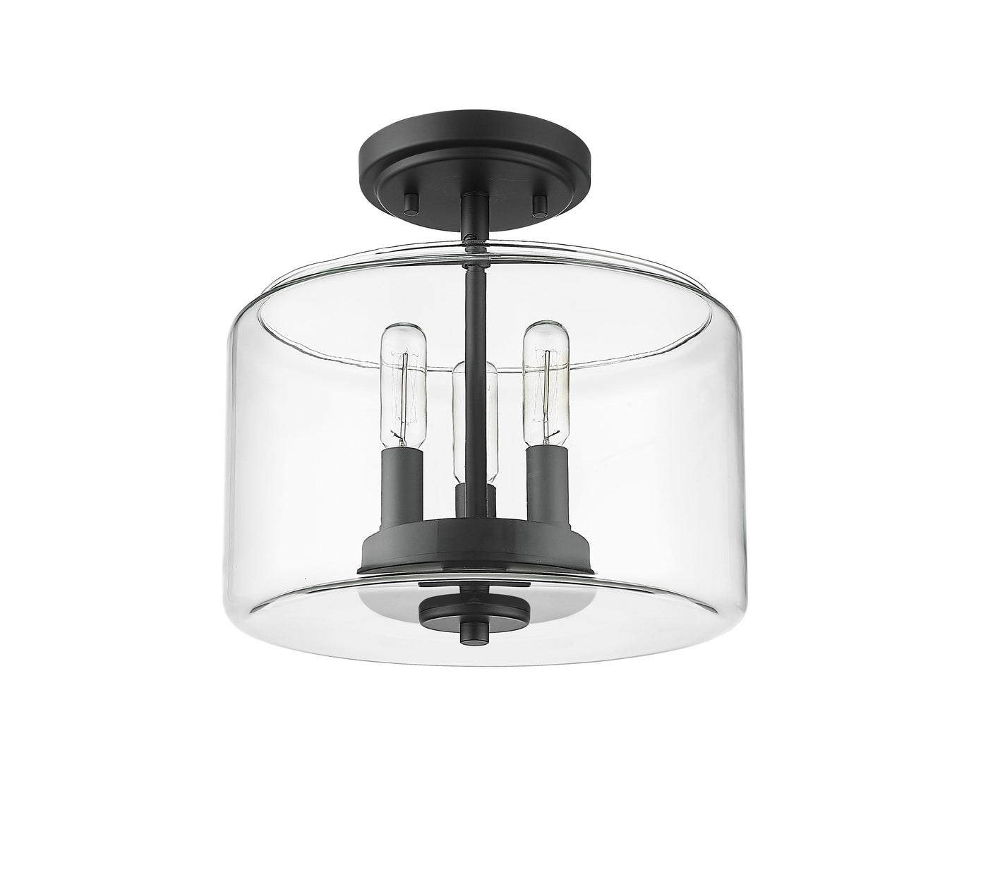 Asheville Semi-Flush Mount Fixture - Matte Black - Clear Glass - 11in. Diameter - E12 Candelabra Base