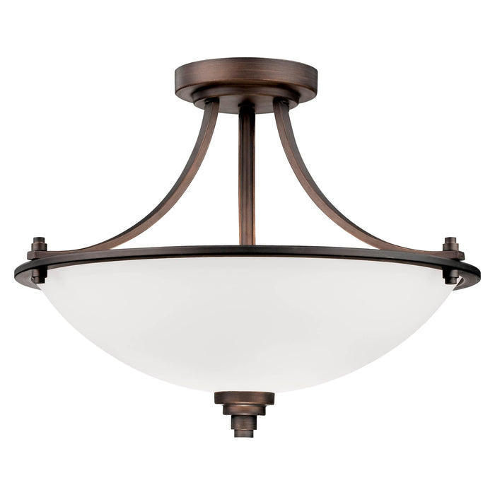 Bristo Semi-Flush Mount Fixture - Rubbed Bronze - Etched White Glass - 17.5in. Diameter - E26 Medium Base