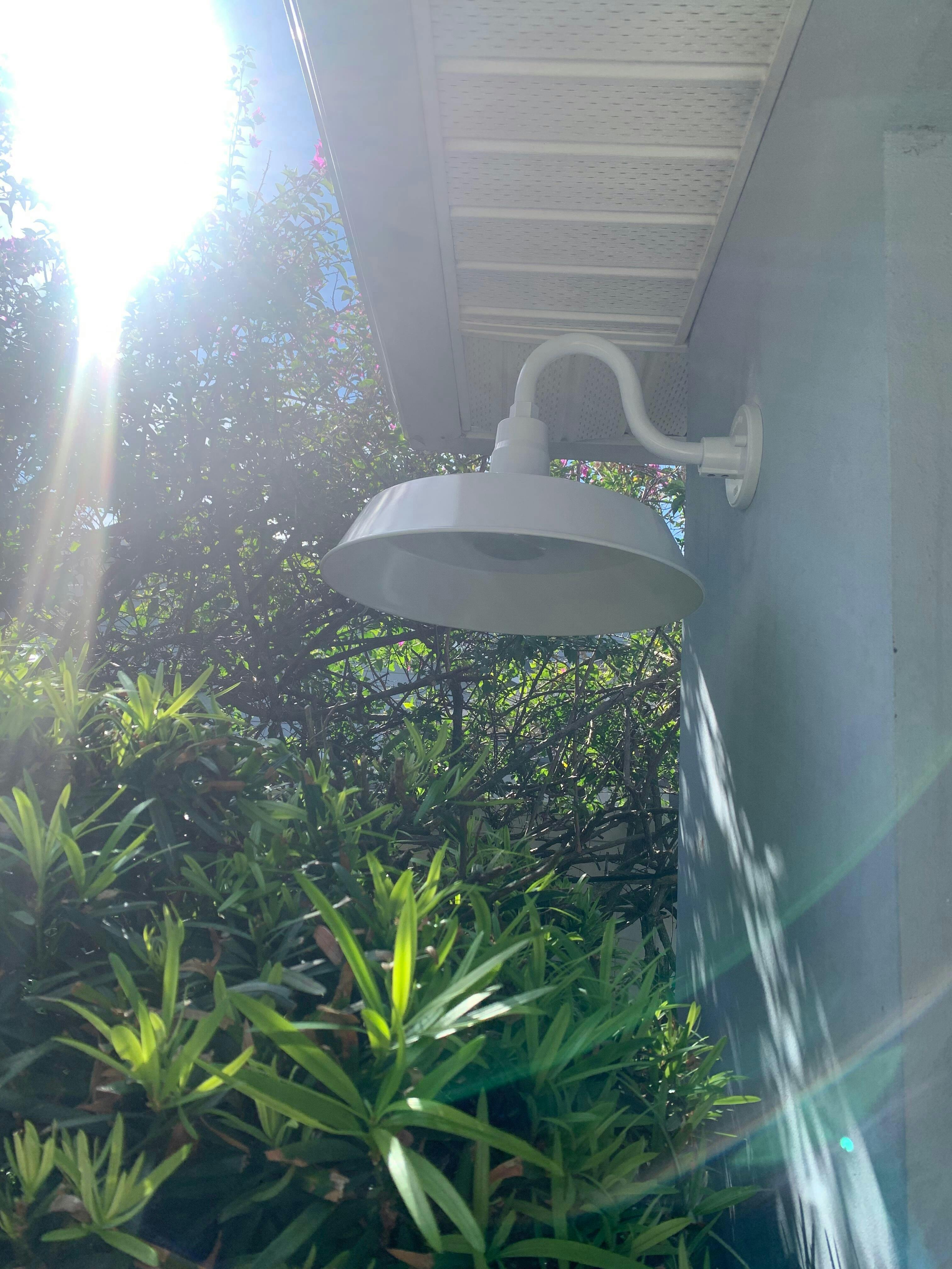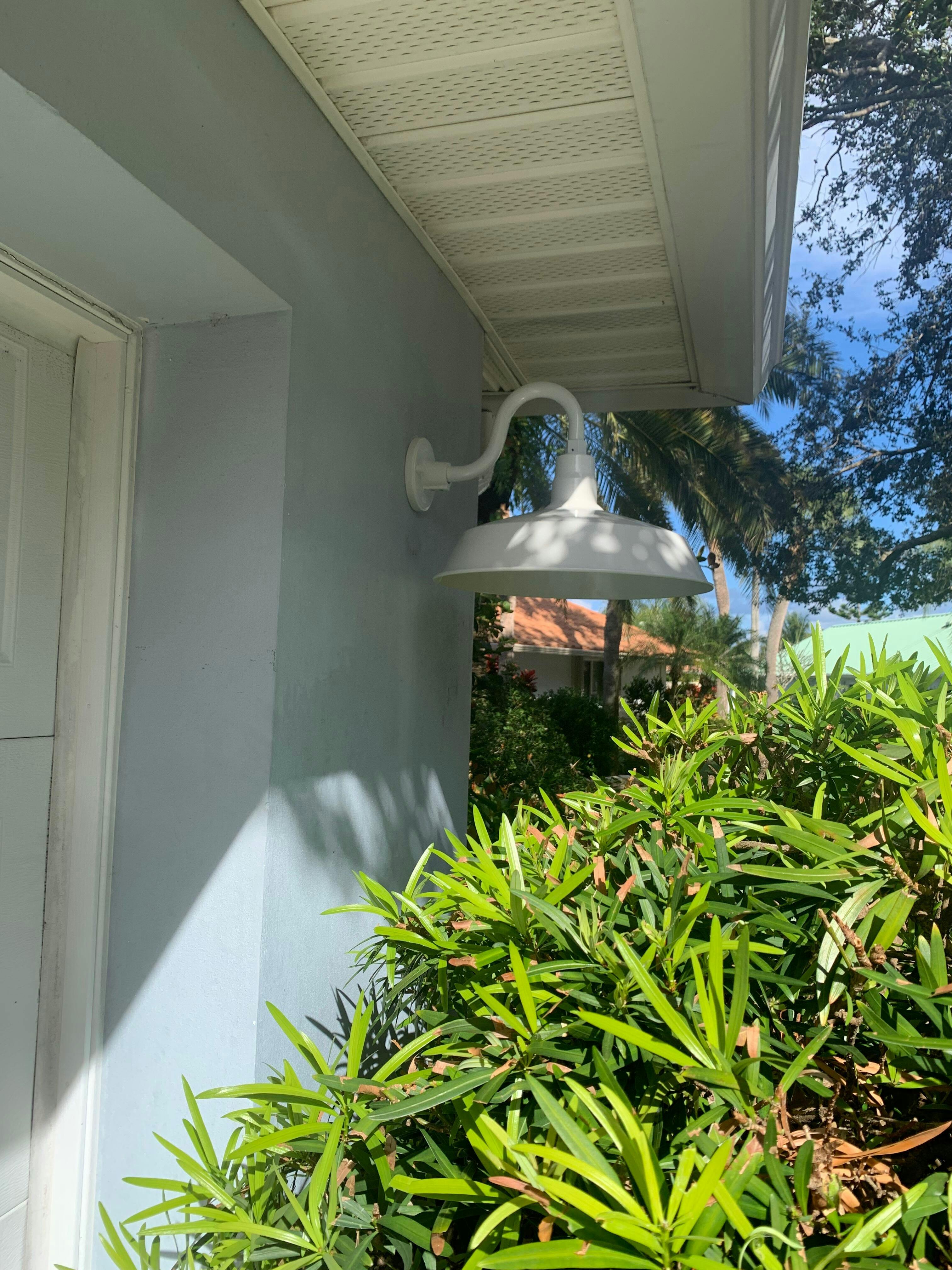 From our Fovero Collection, the White Barn Light Fixture has a 14in. Shade Diameter and 8in. Shade Height.