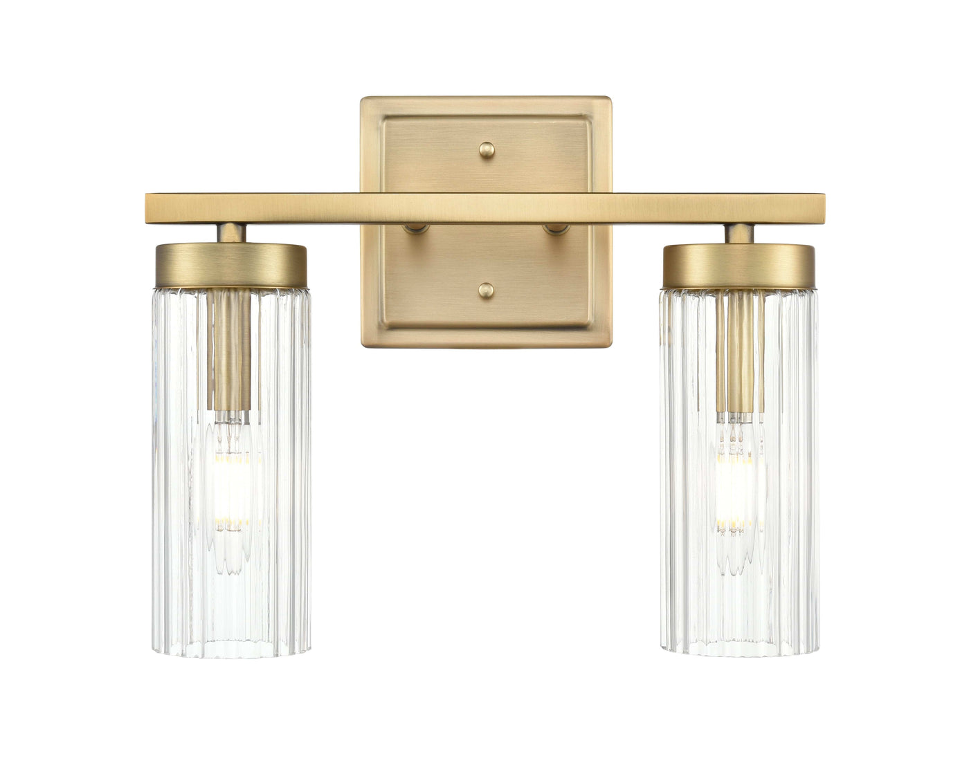 2 Lamps Iversen Vanity Light - Vintage Brass - Clear Reeded Glass - 12.5in. Wide