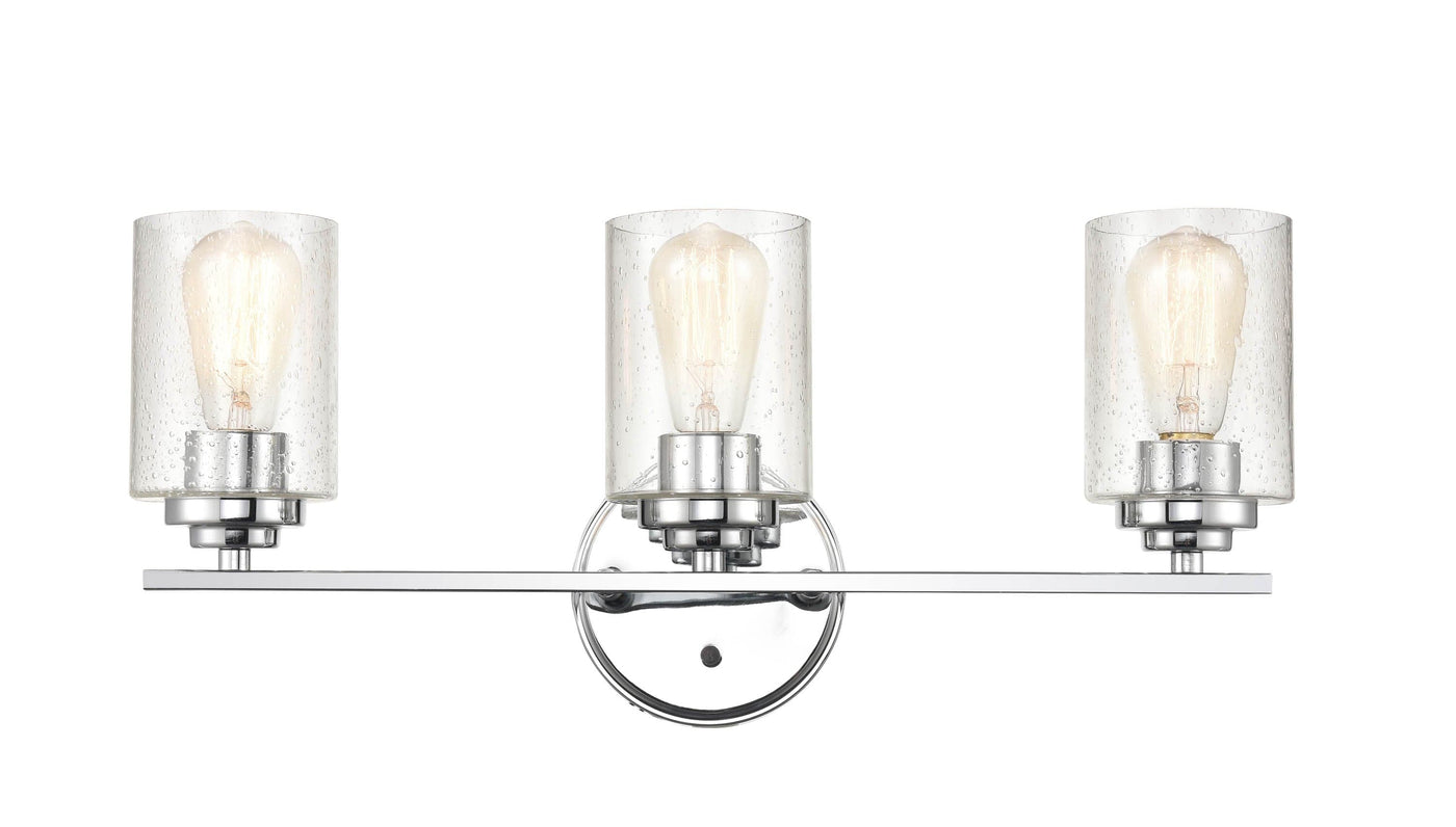 This Vanity Light features a Chrome finish and Clear Seeded glass.