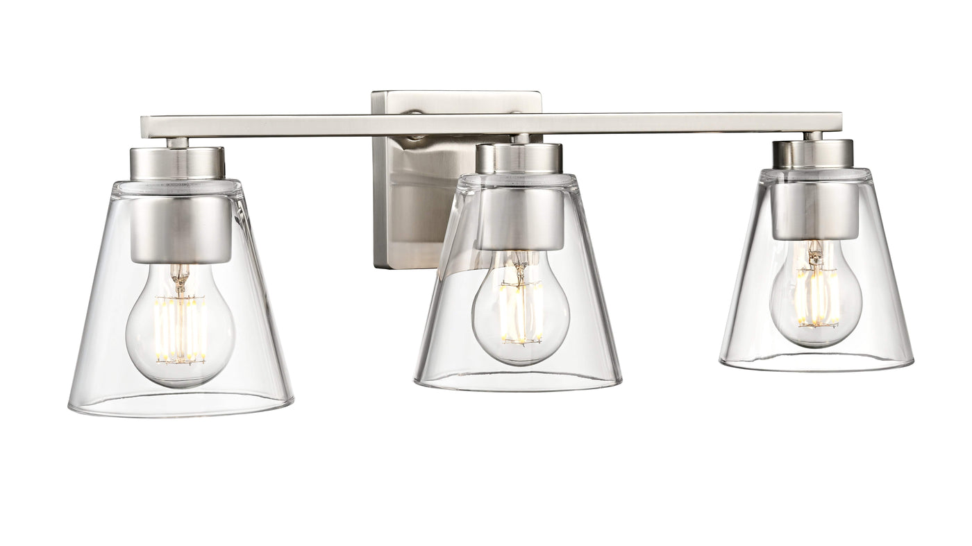 3 Lamps Strayhan Vanity Light - Brushed Nickel - Clear Glass - 22in. Wide