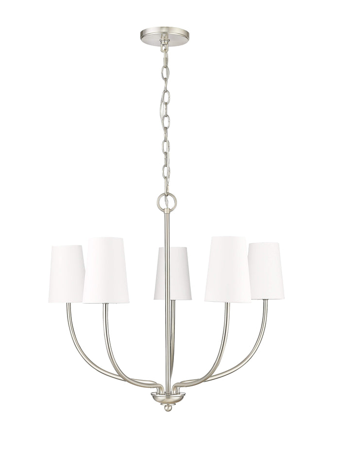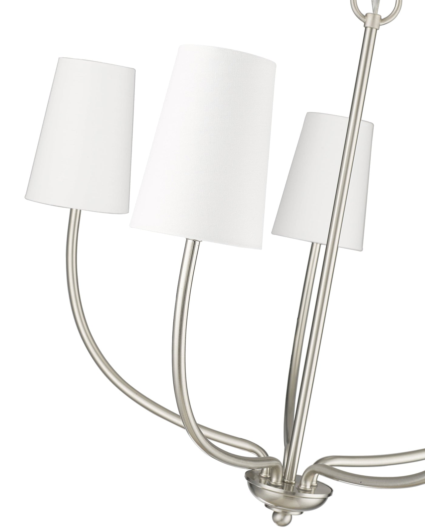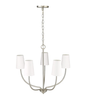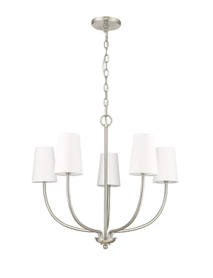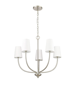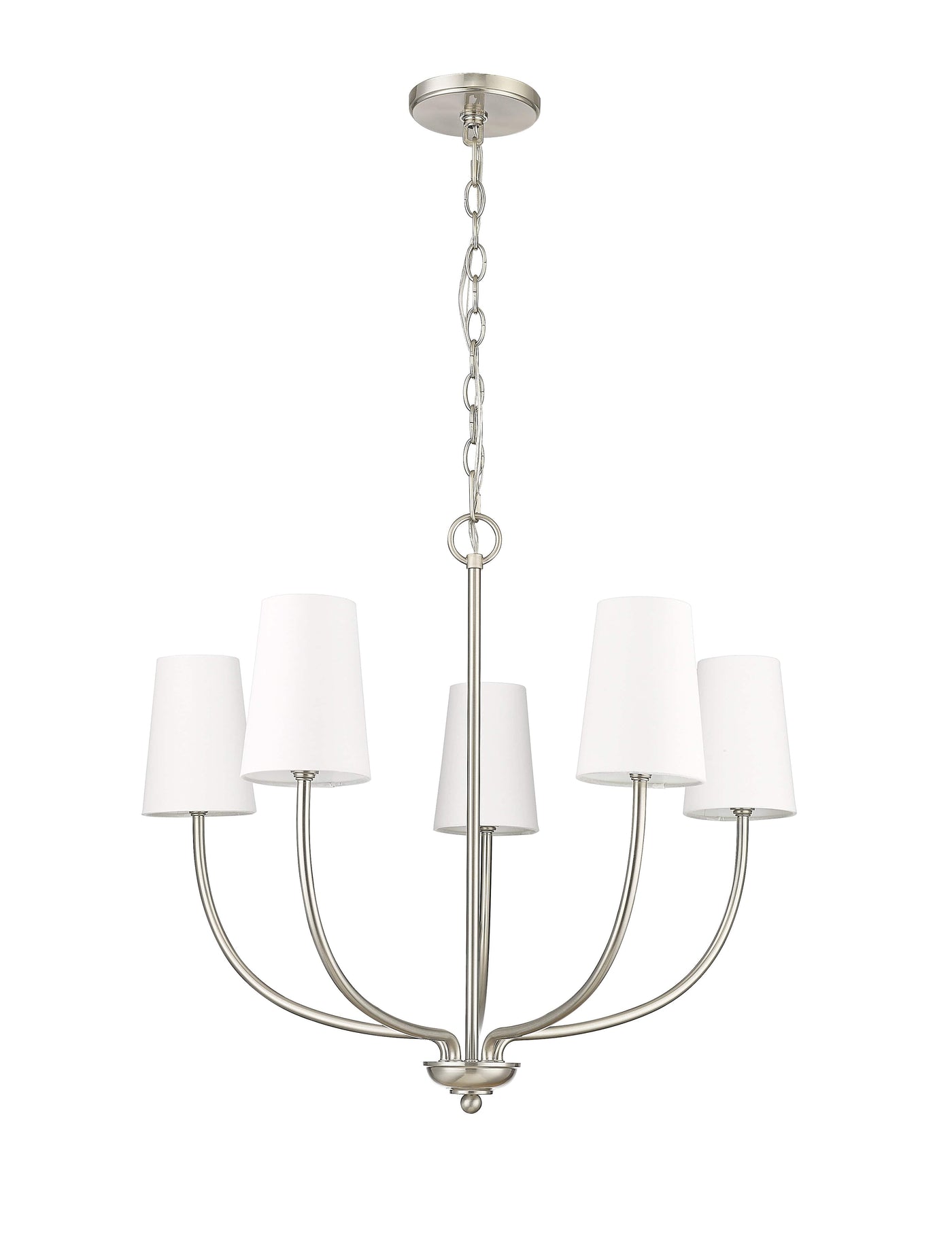 5 Lamps Kandor Chandelier - Brushed Nickel - White Fabric Shade - 26in Diameter - E12 Candelabra Base