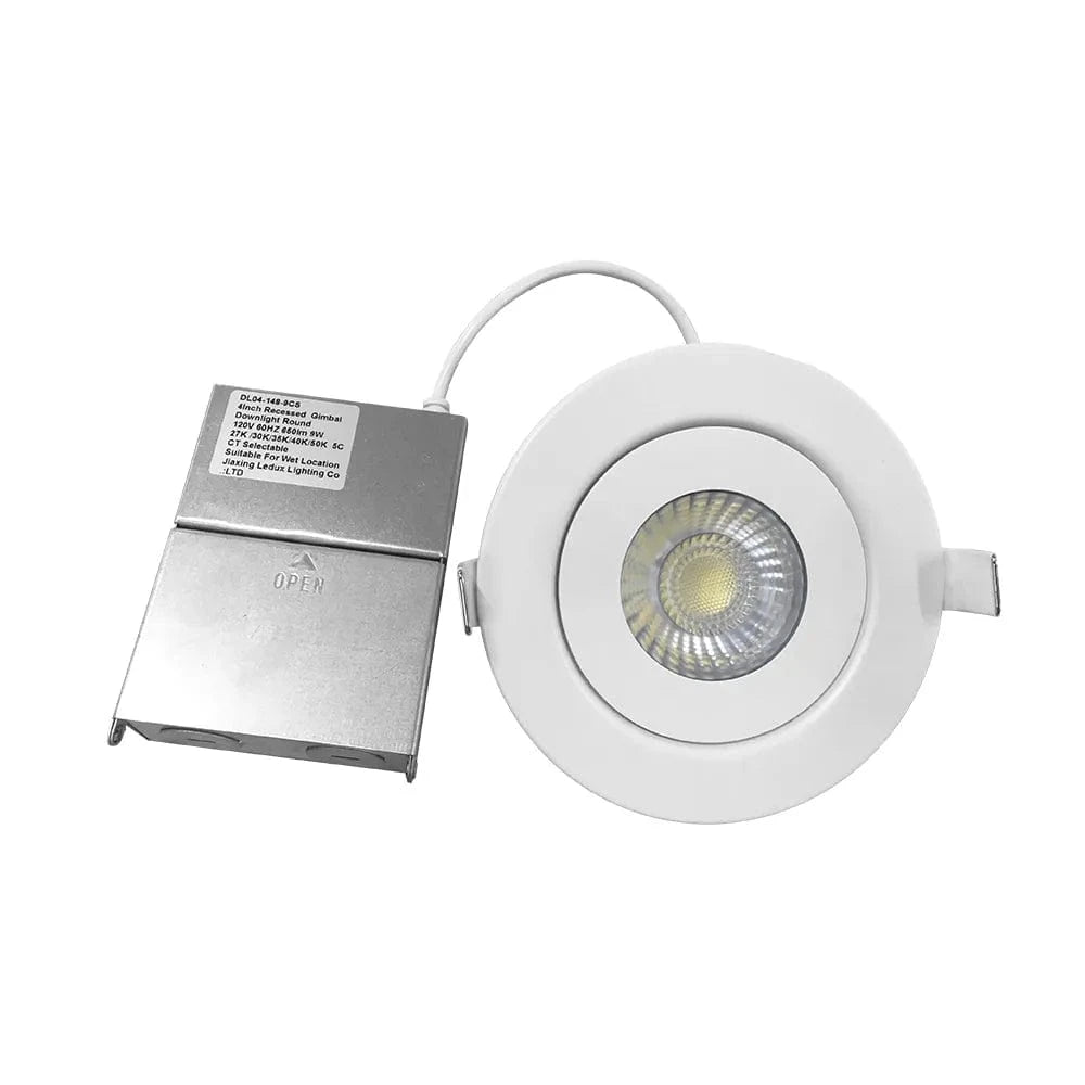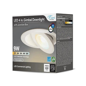9W 4in. Gimbal LED Downlight - 45 Degree Beam - 5CCT - 120V - CRI>90 - Junction Box - 650 Lm