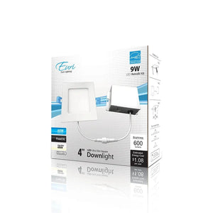 9W 4in. Recessed Dimmable Square Slim LED Downlight - 120 Degree Beam - 120V - CRI>80 - Junction Box - 600 Lm - 4000K