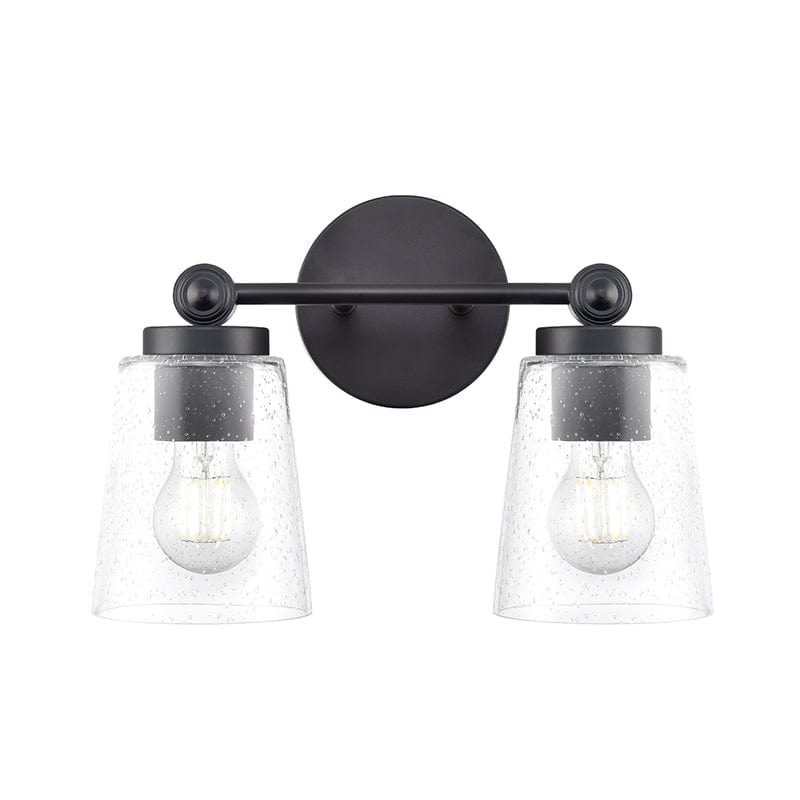 2 Lamps Lauryn Vanity Light - Matte Black - Clear Seeded Glass - 13.5in. Wide