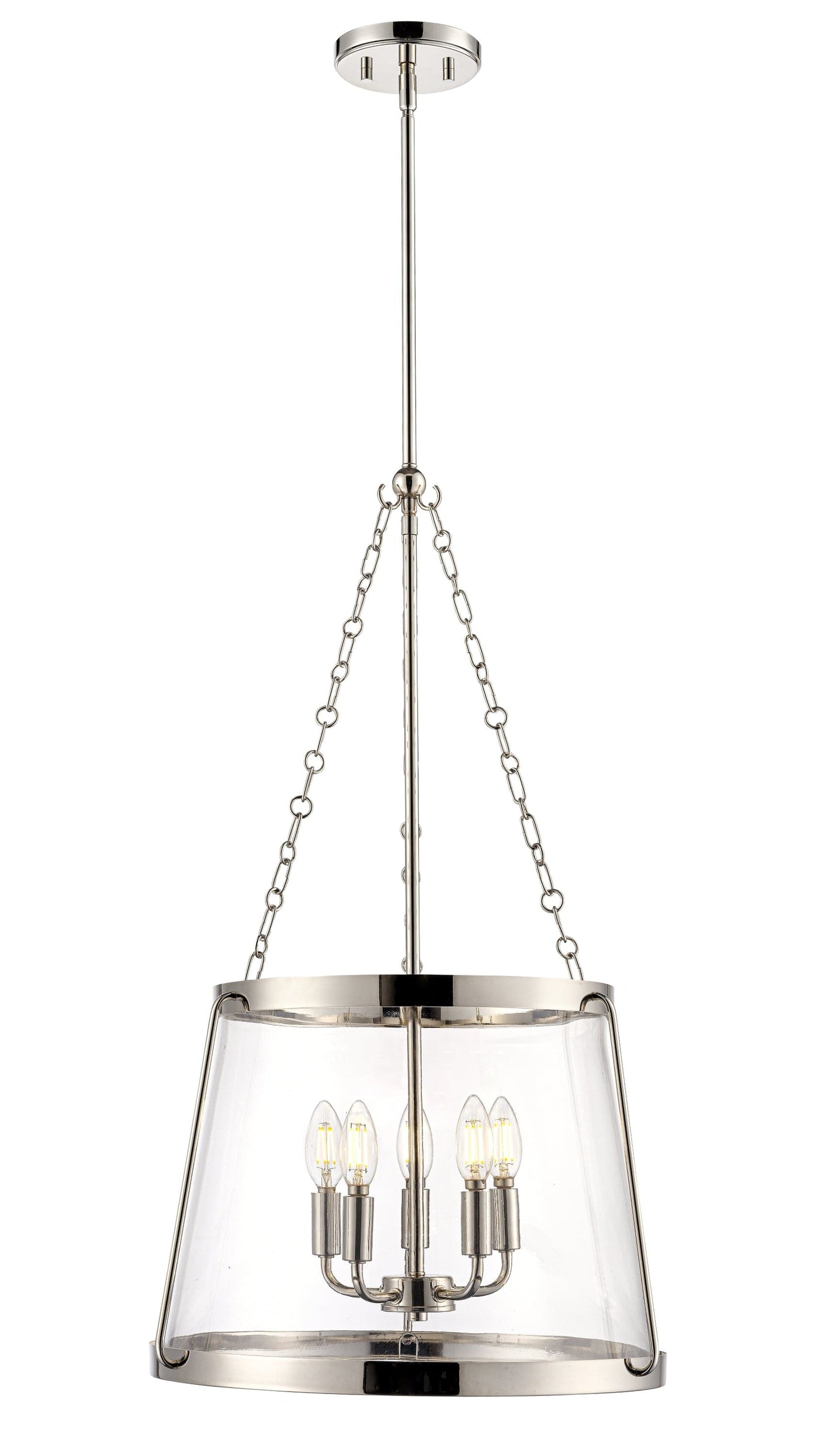 Adabella Pendant Fixture - Polished Nickel - Clear Glass - 17.75in. Diameter - E12 Candelabra Base
