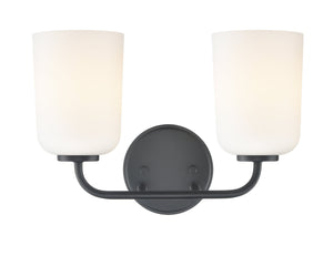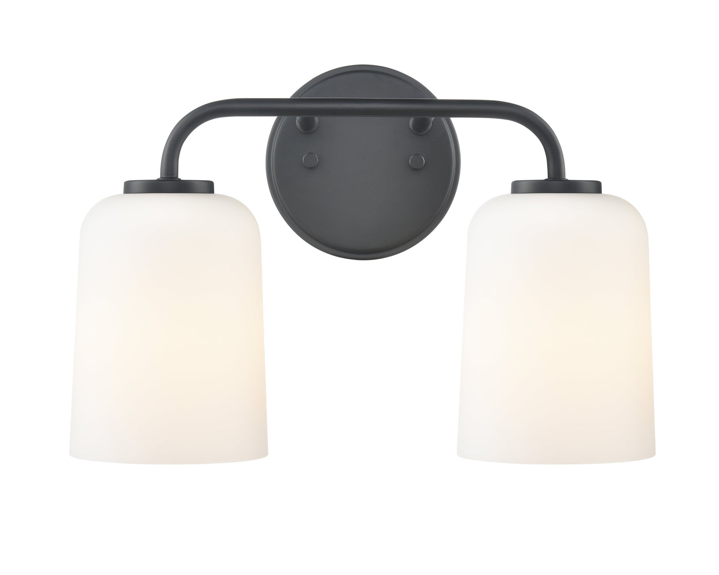 2 Lamps Laphia Vanity Light - Matte Black - Etched Opal Glass - 14in. Wide