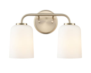 2 Lamps Laphia Vanity Light - Modern Gold - Etched Opal Glass - 14in. Wide