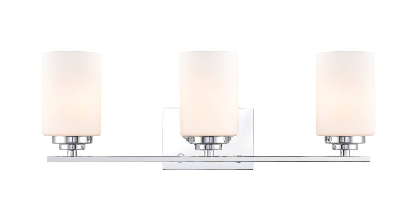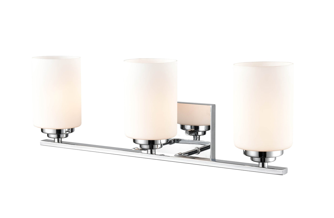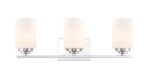3 Lamps Durham Vanity Light - Chrome - Etched White Glass - 22in. Wide