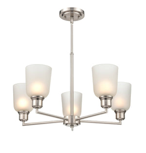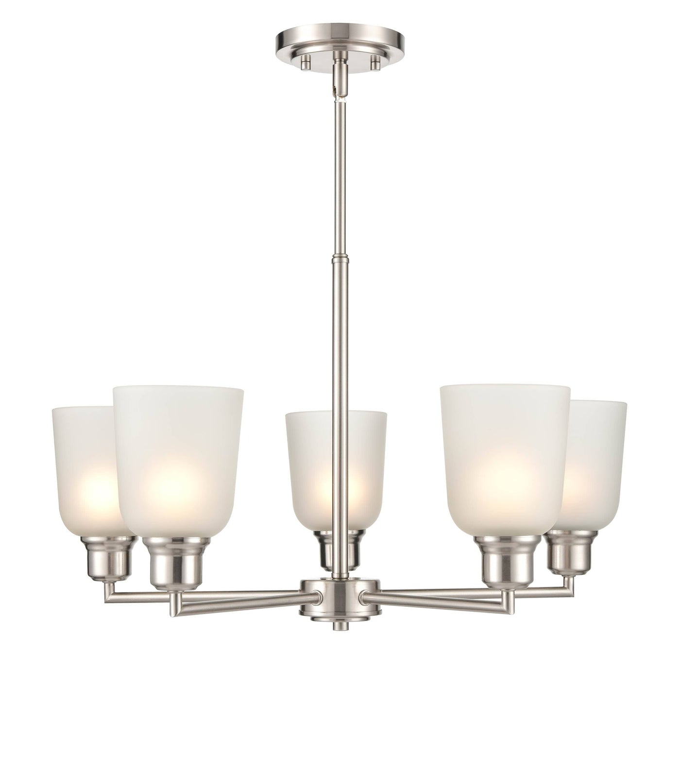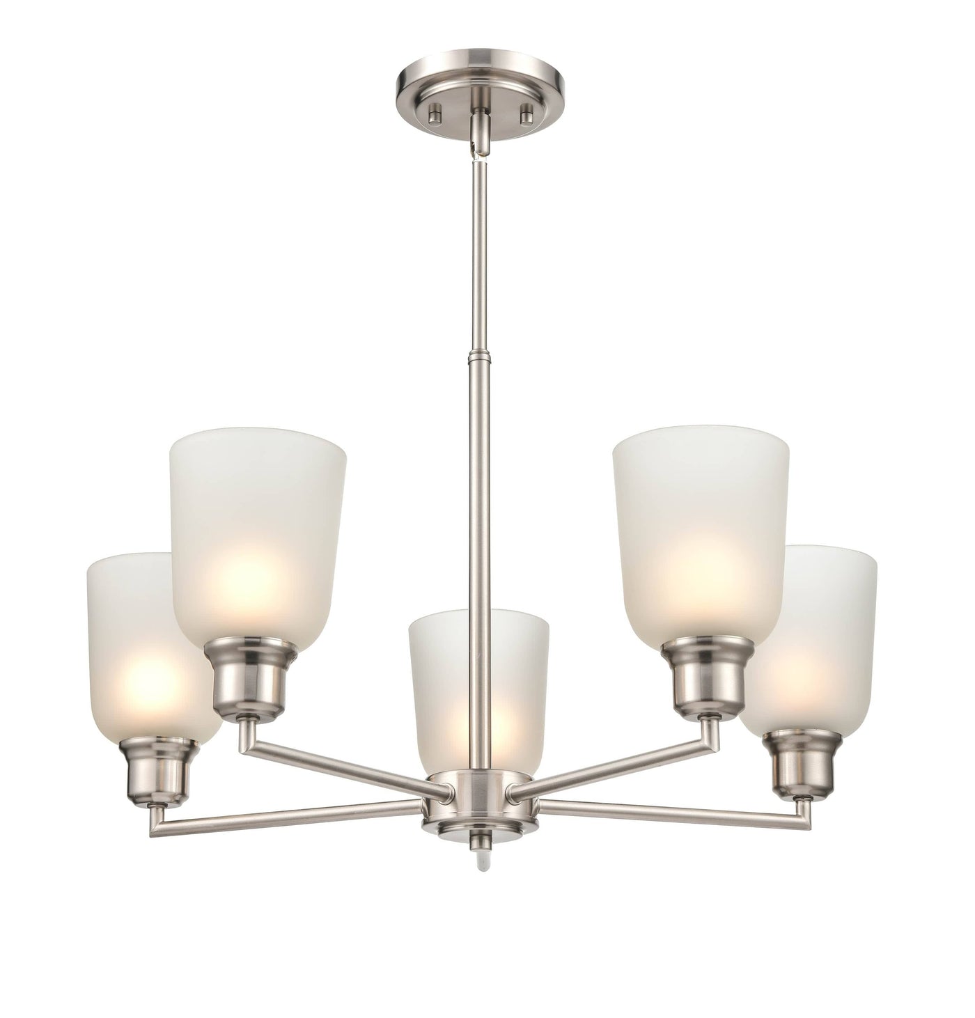 5 Lamps Amberle Chandelier - Brushed Nickel - Frosted White Glass - 24in Diameter - E26 Medium Base