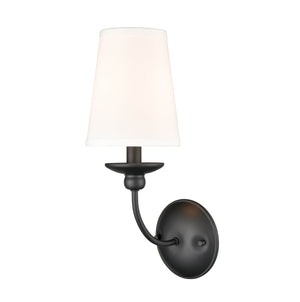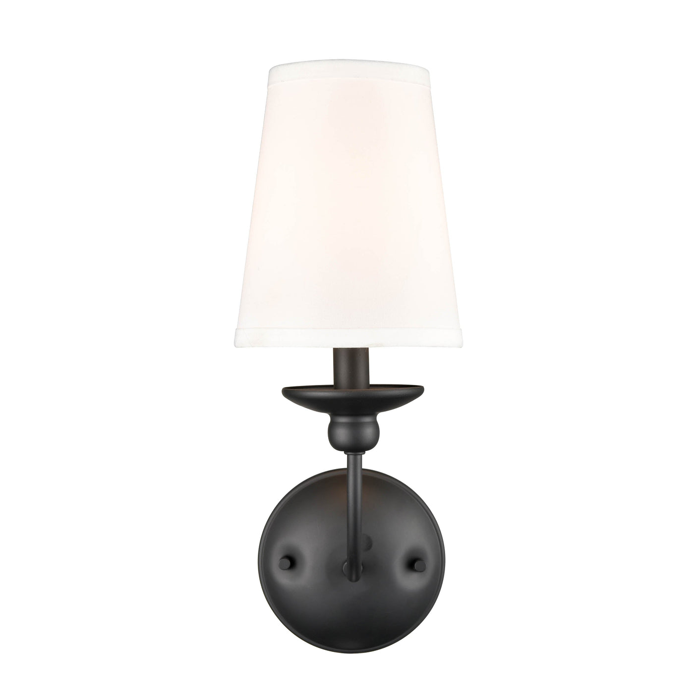 Delvona Wall Sconce - Matte Black - White Cotton Shade - 5.5in. Extension - E12 Candelabra Base