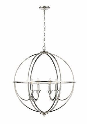 6 Lamps Artemis Chandelier - Polished Nickel - 30in Diameter - E12 Candelabra Base