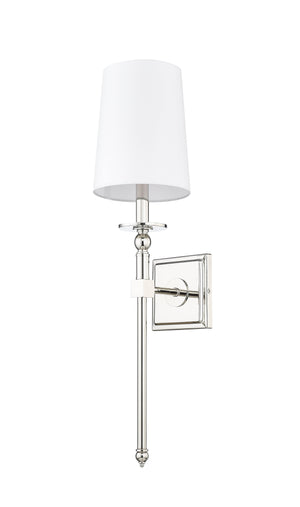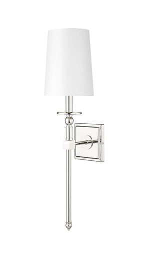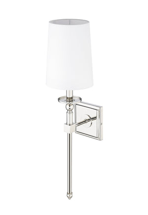 Wall Sconce - Polished Nickel - White Linen Shade - 7in. Extension - E12 Candelabra Base