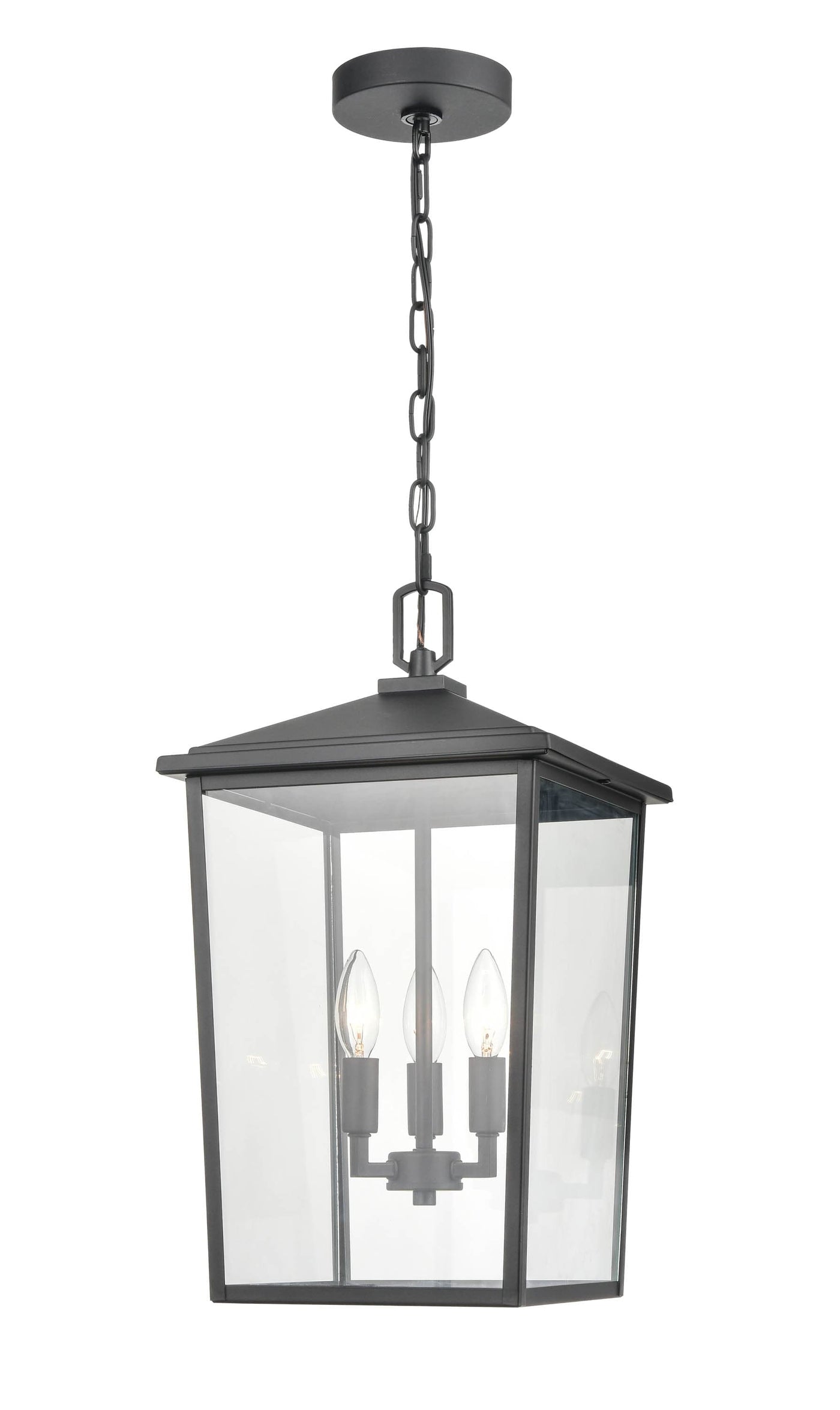 Fetterton Outdoor Hanging Lantern - Powder Coated Black - Clear Glass - 11in. Diameter - E12 Candelabra Base