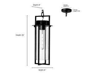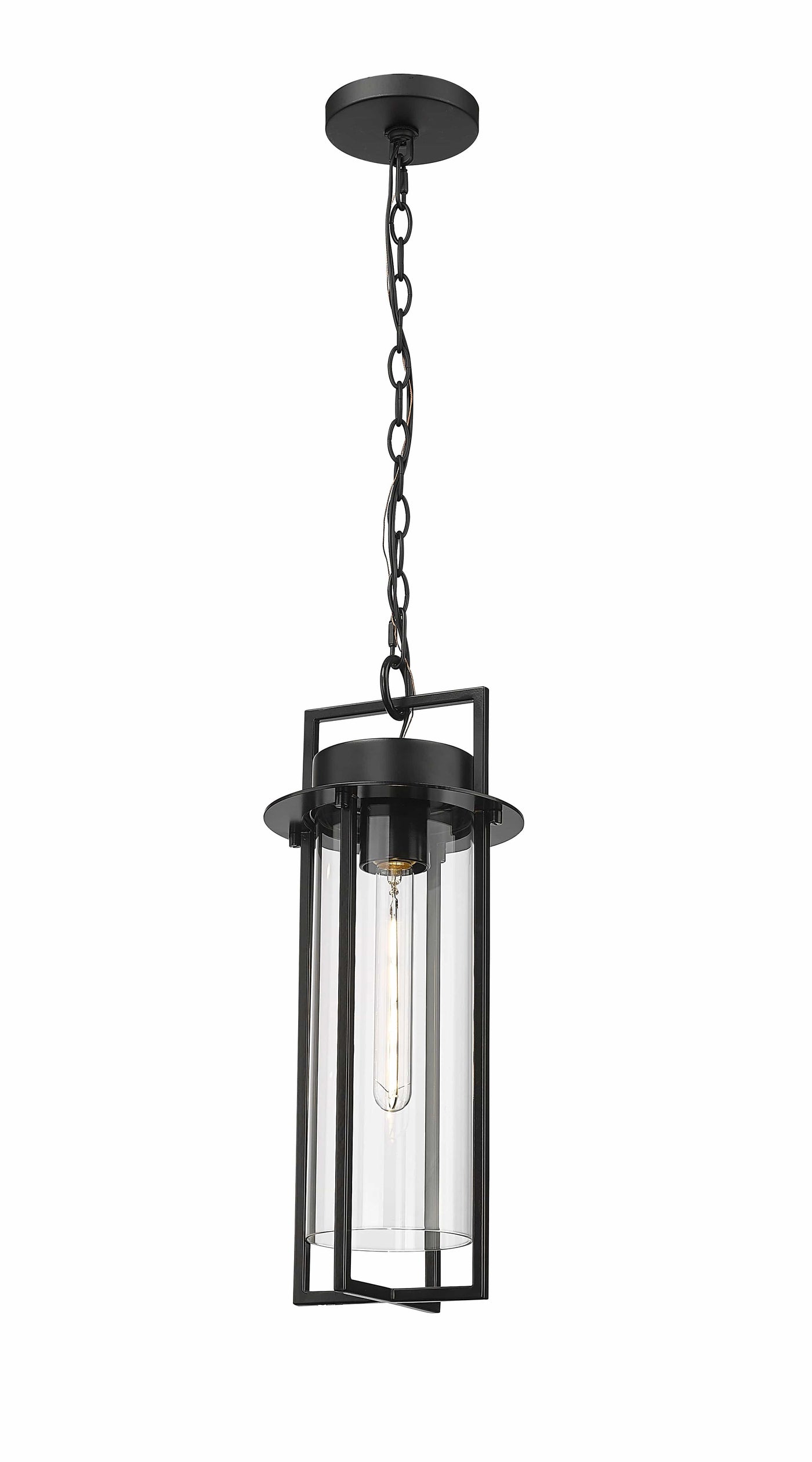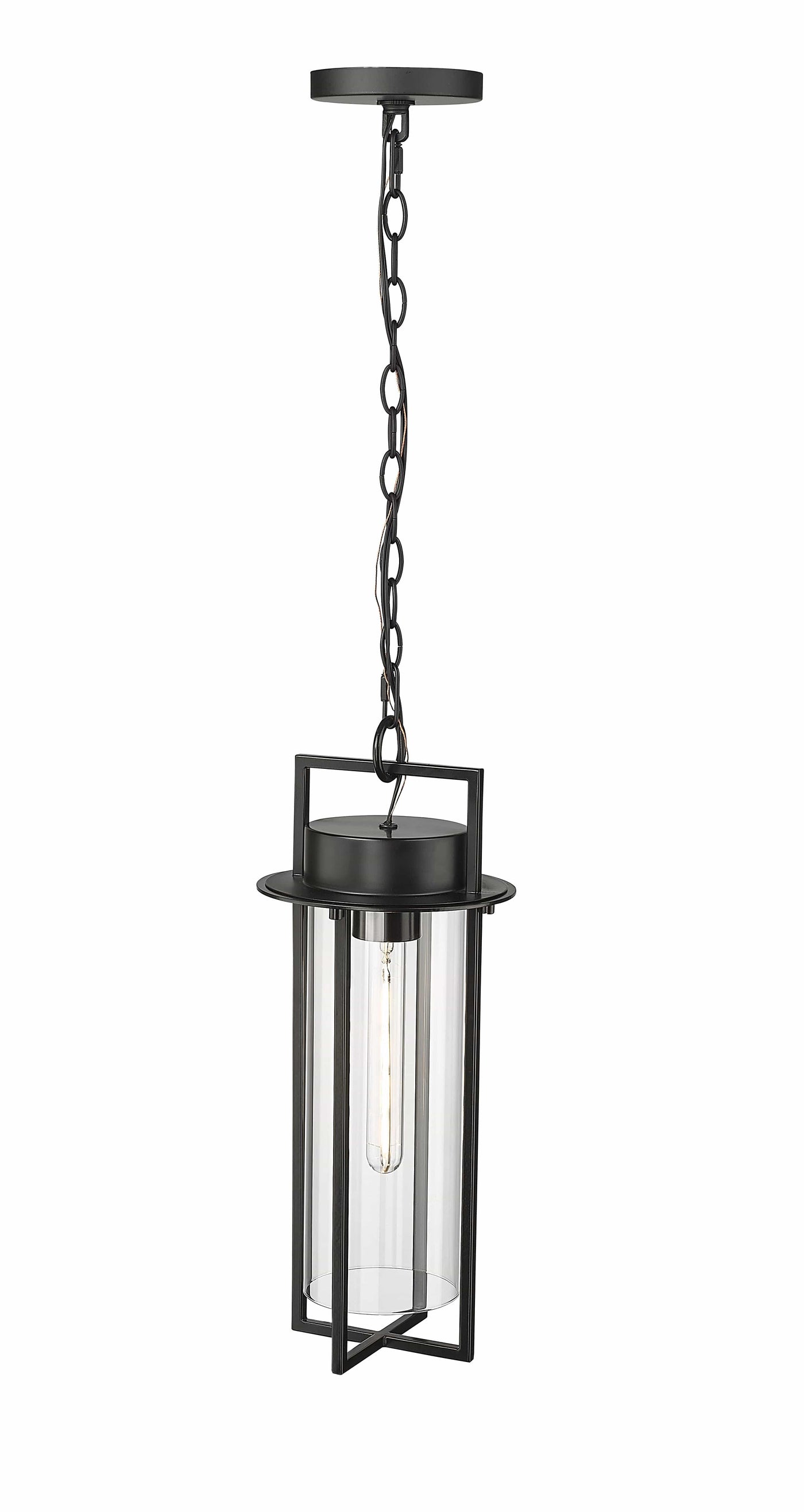 Russell Outdoor Hanging Lantern - Powder Coated Black - Clear Glass - 8in. Diameter - E26 Medium Base