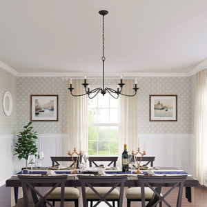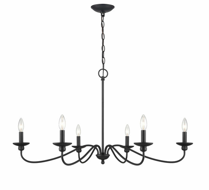 6 Lamps Delvona Chandelier - Matte Black - 36.75in Diameter - E12 Candelabra Base