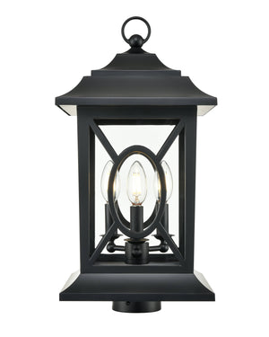 Allbert Outdoor Post Top Lantern - Powder Coated Black - Clear Glass - 10in. Diameter - E12 Candelabra Base