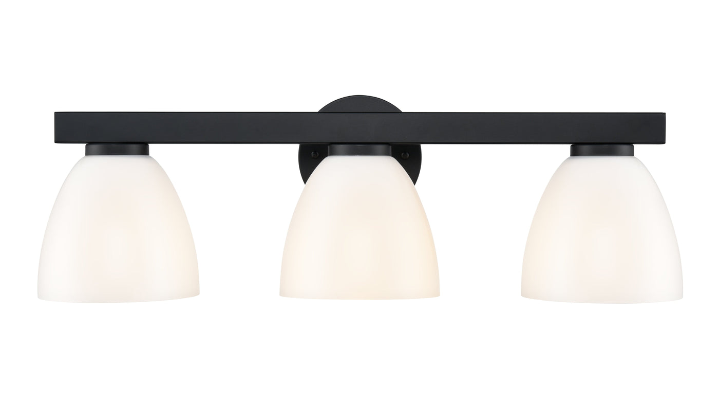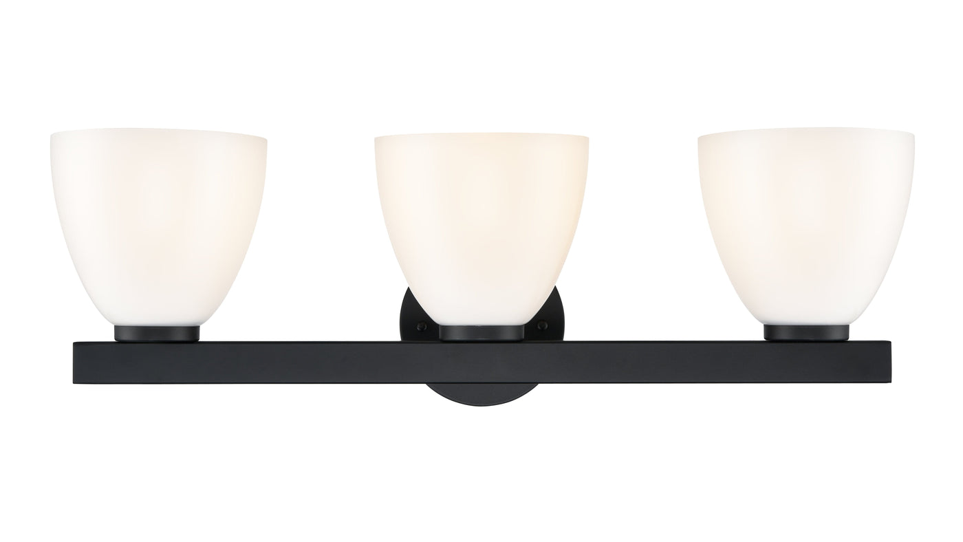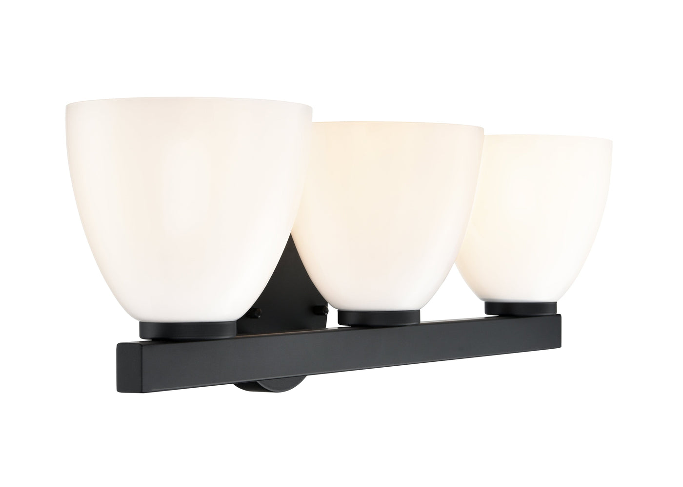 3 Lamps Apria Vanity Light - Matte Black - Opal Glass - 24in. Wide