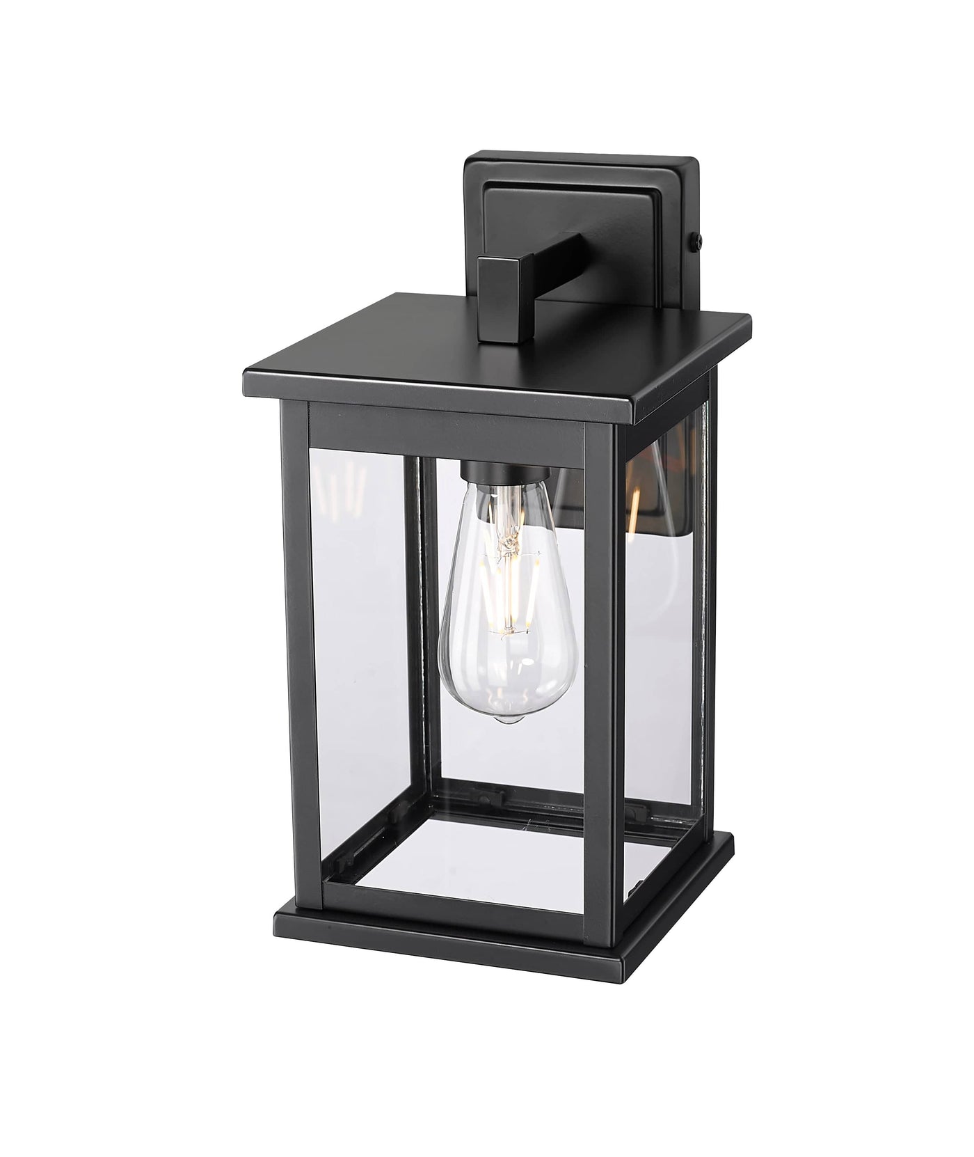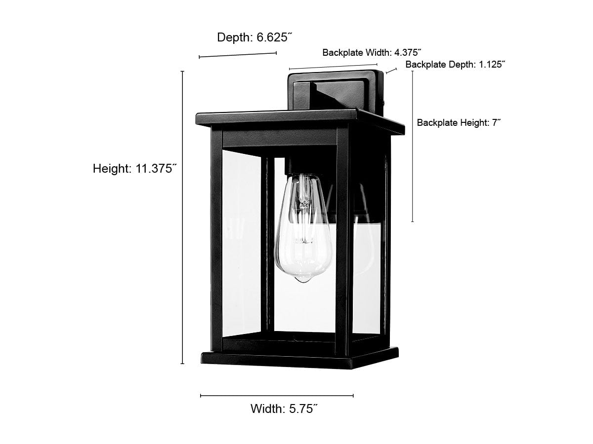Finished in quintessential powder coat black with clear glass panels, the fixtures are available in a variety of sizes, making them the perfect selection for porches and walkways.