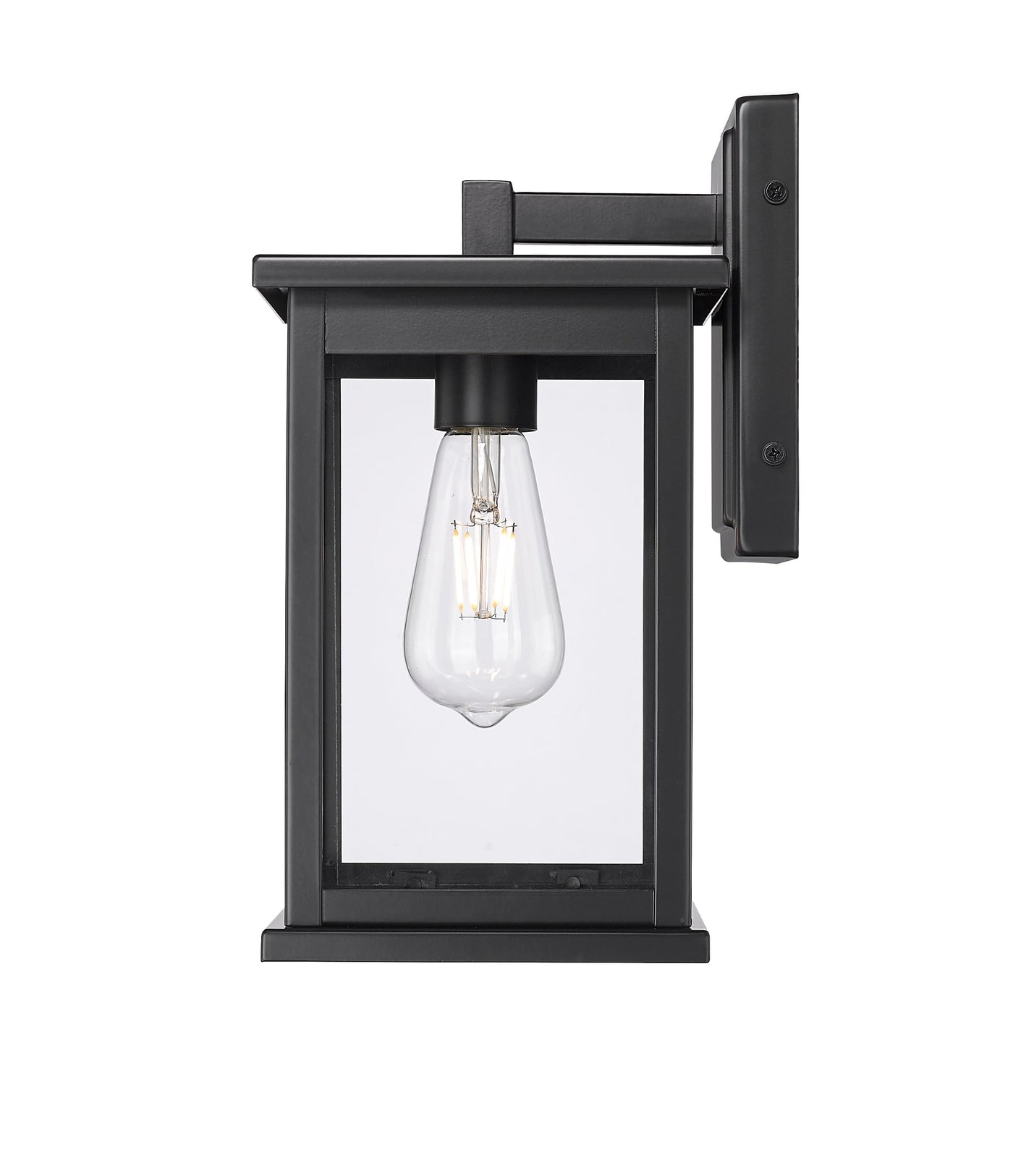 Bowton II Outdoor Wall Sconce - Powder Coated Black - Clear Glass - 6.625in. Extension - E26 Medium Base