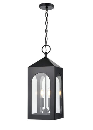Bratton Outdoor Hanging Lantern - Powder Coated Black - Clear Glass - 8.5in. Diameter - E12 Candelabra Base