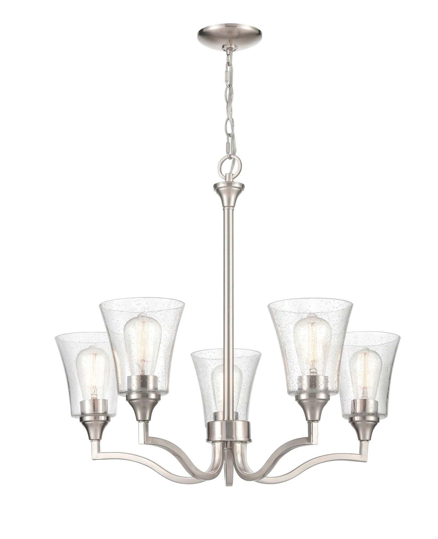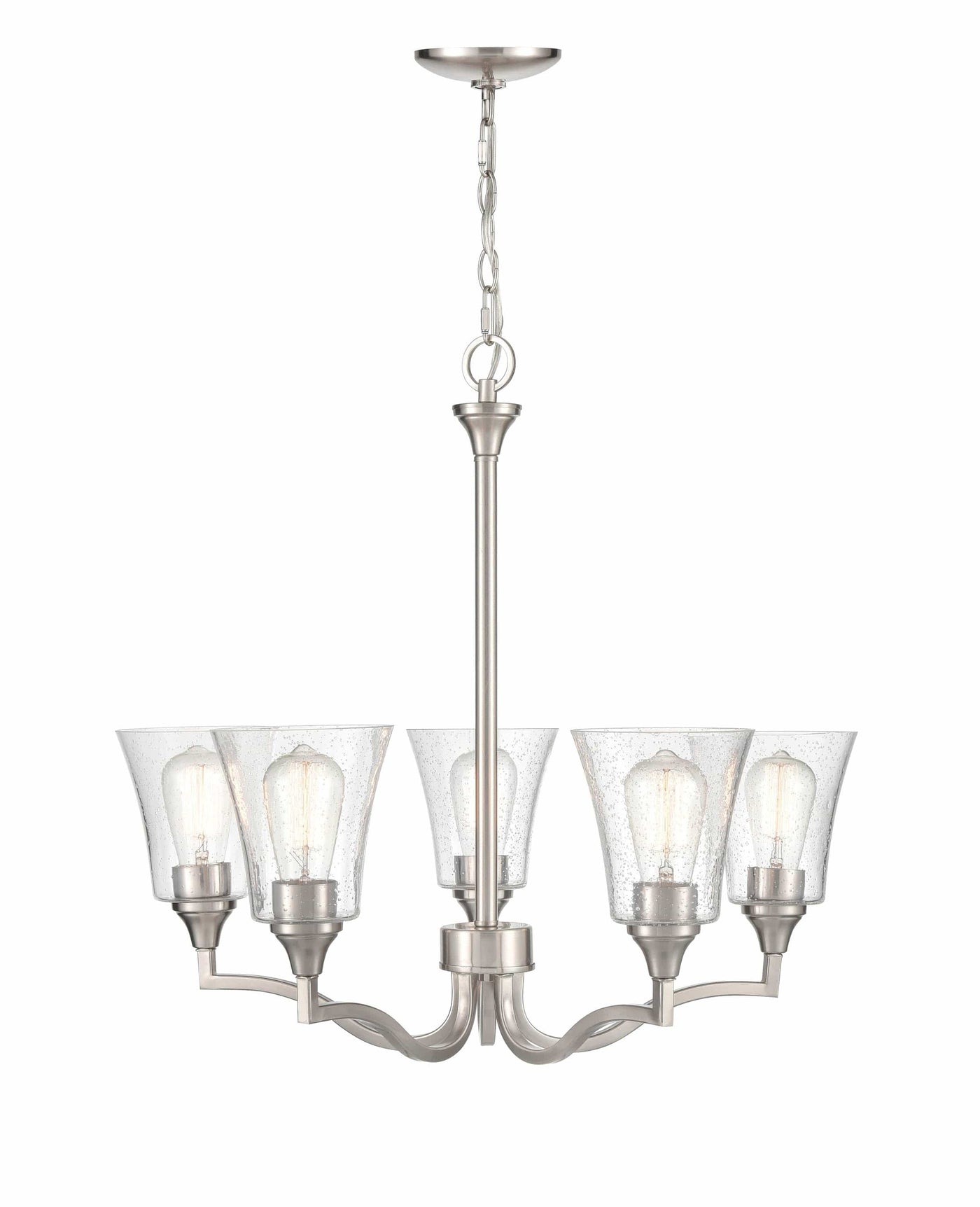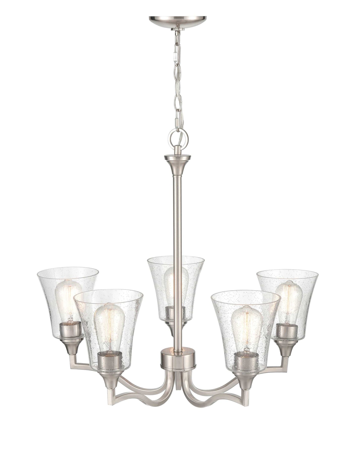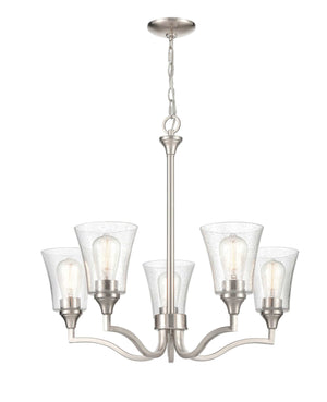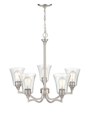 5 Lamps Caily Chandelier - Brushed Nickel - Clear Seeded Glass - 26in Diameter - E26 Medium Base