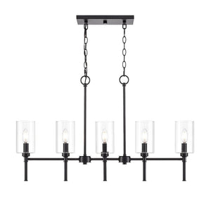 5 Lamp Chastine Island Chandelier - Matte Black - Clear Beveled Glass - 36in Diameter - E12 Candelabra Base
