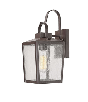 Devens Outdoor Wall Sconce - Powder Coated Bronze - Clear Seeded Glass - 12in. Extension - E26 Candelabra Base