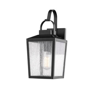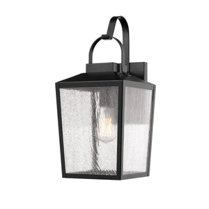 Devens Outdoor Wall Sconce - Powder Coated Black - Clear Seeded Glass - 9.375in. Extension - E26 Medium Base