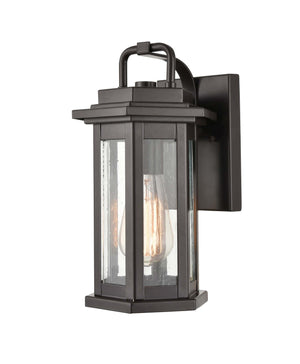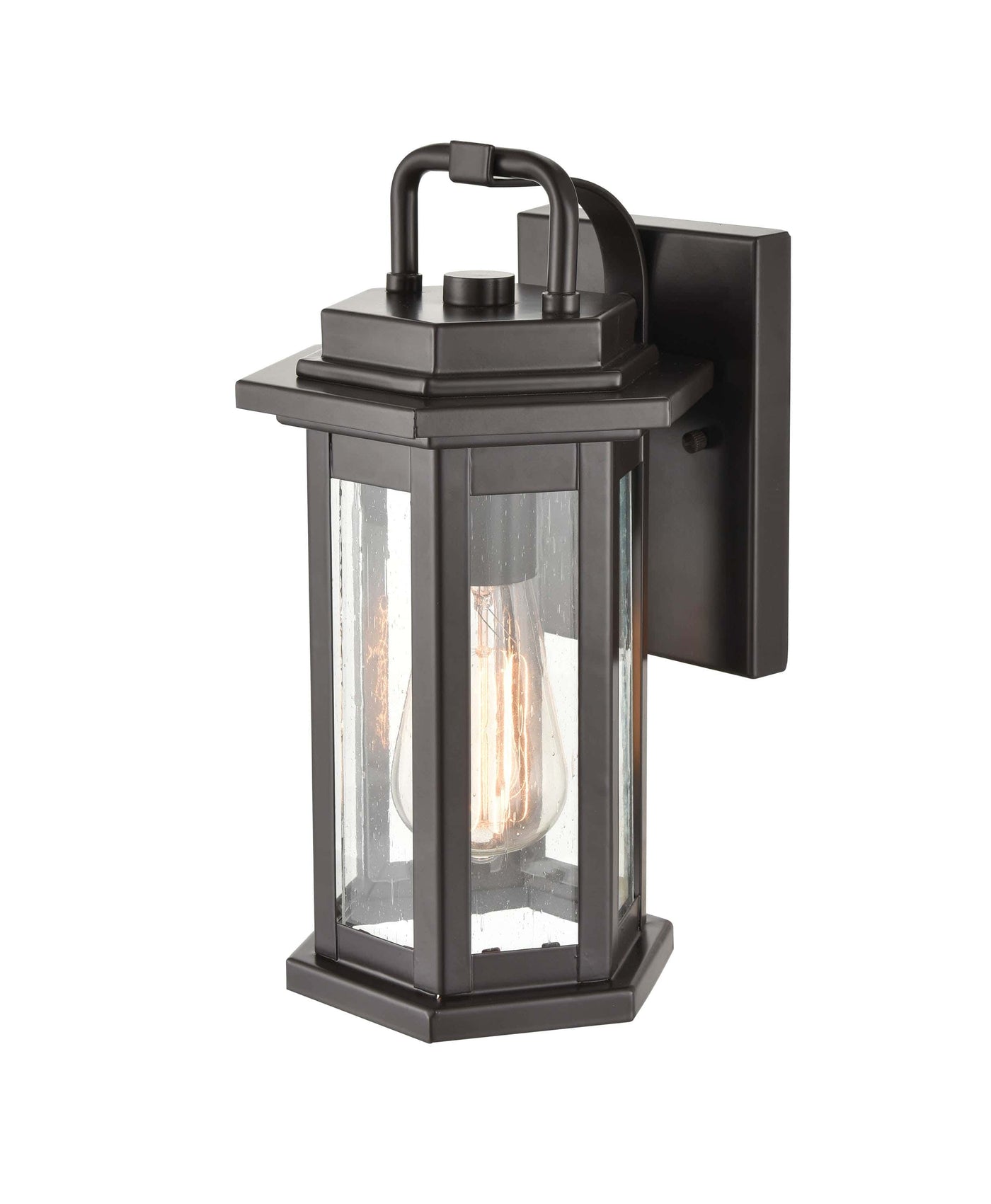 Ellis Outdoor Wall Sconce - Powder Coat Bronze - Clear Seeded Glass - 7in. Extension - E26 Medium Base