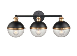 3 Lamps Ellmira Vanity Light - Matte Black / Aged Brass - Clear Seeded Glass - 23.75in. Wide