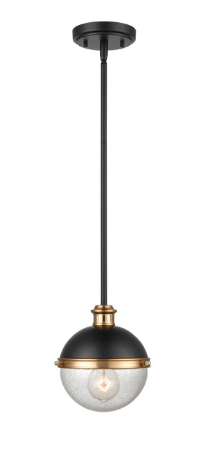 Ellmira Pendant - Matte Black / Aged Brass - Clear Seeded Glass - 11in. Diameter - E26 Medium Base