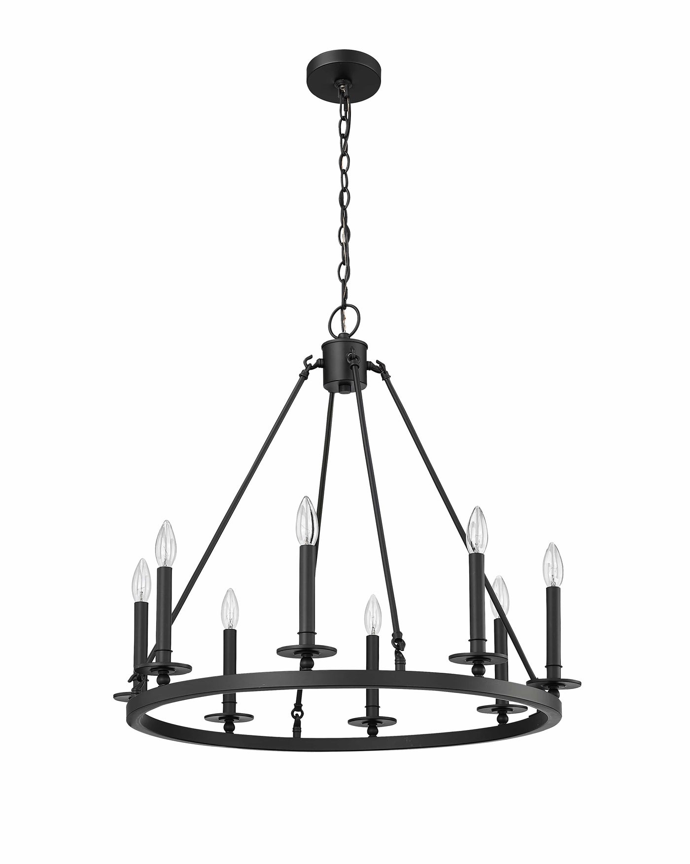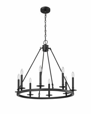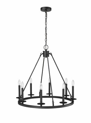 8 Lamps Florence Chandelier - Matte Black - 28in Diameter - E12 Candelabra Base