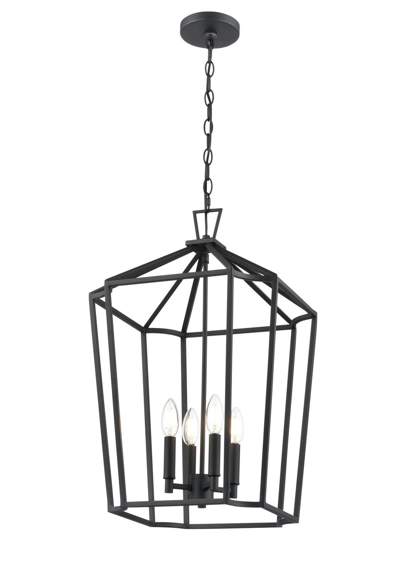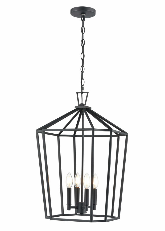 Geometric angles and an open metal framework, reminiscent of the classic lantern form, strike the perfect balance of modern and traditional styling in the Hylena Family of pendant lighting.