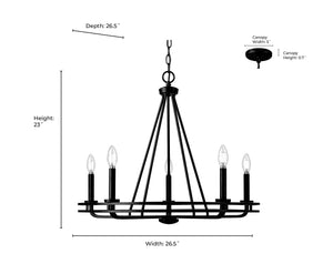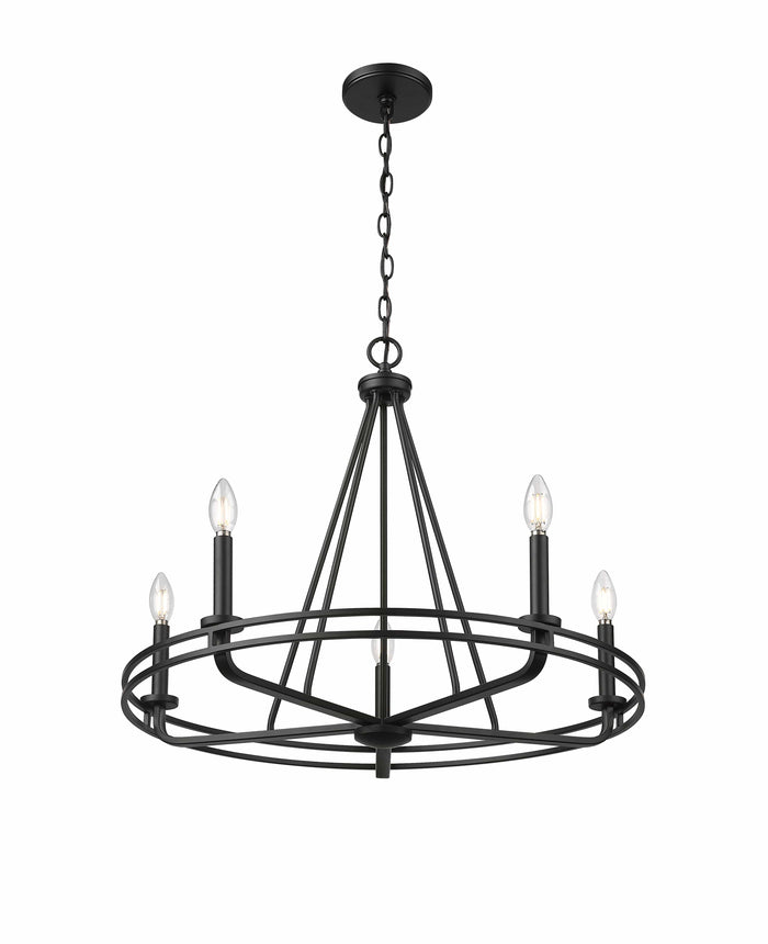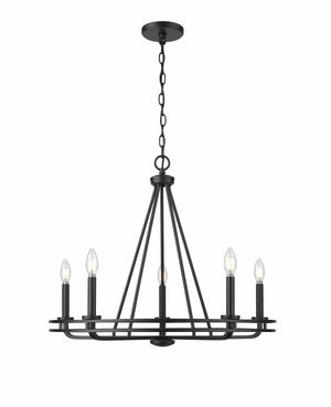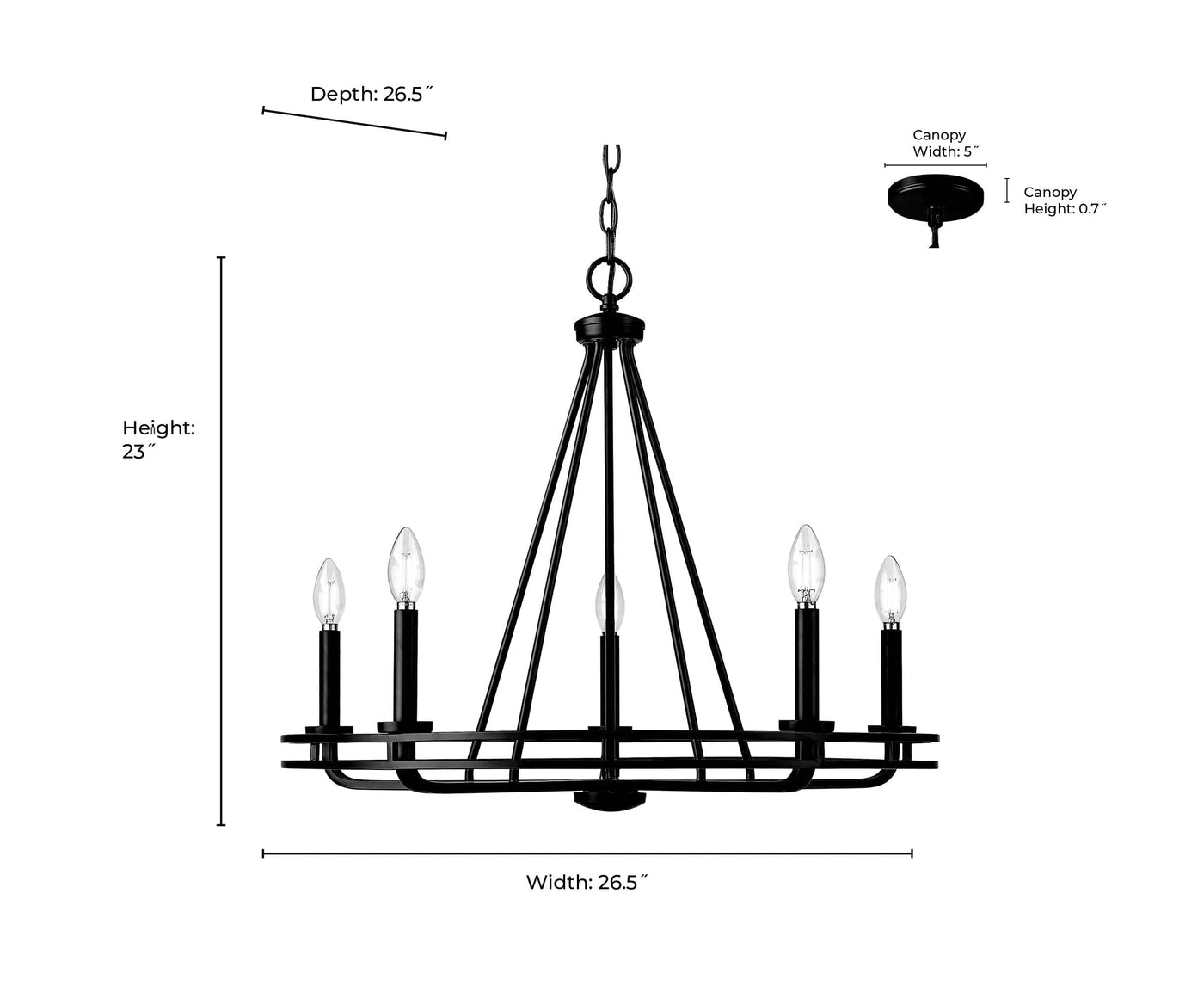5 Lamps Jody Chandelier - Matte Black - Glass - 26.5in Diameter - E12 Candelabra Base