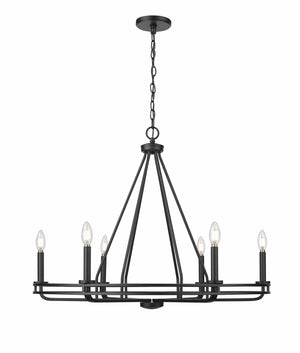 6 Lamps Jody Chandelier - Matte Black - Glass - 32.5in Diameter - E12 Candelabra Base
