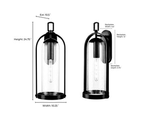 Luxio Outdoor Wall Sconce - Powder Coated Black - Clear Glass - 10.5in. Extension - E26 Medium Base