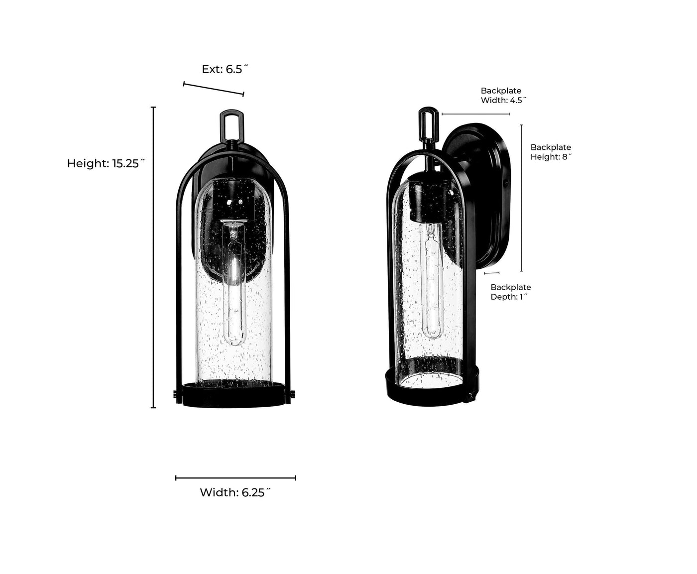 Luxio Outdoor Wall Sconce - Powder Coated Black - Clear Glass - 6.5in. Extension - E26 Medium Base
