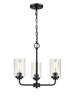 3 Lamps Moven Chandelier - Matte Black - Clear Seeded Glass - 18in Diameter - E26 Medium Base