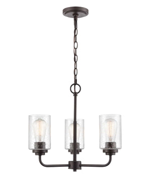 3 Lamps Moven Chandelier - Rubbed Bronze - Clear Seeded Glass - 18in Diameter - E26 Medium Base