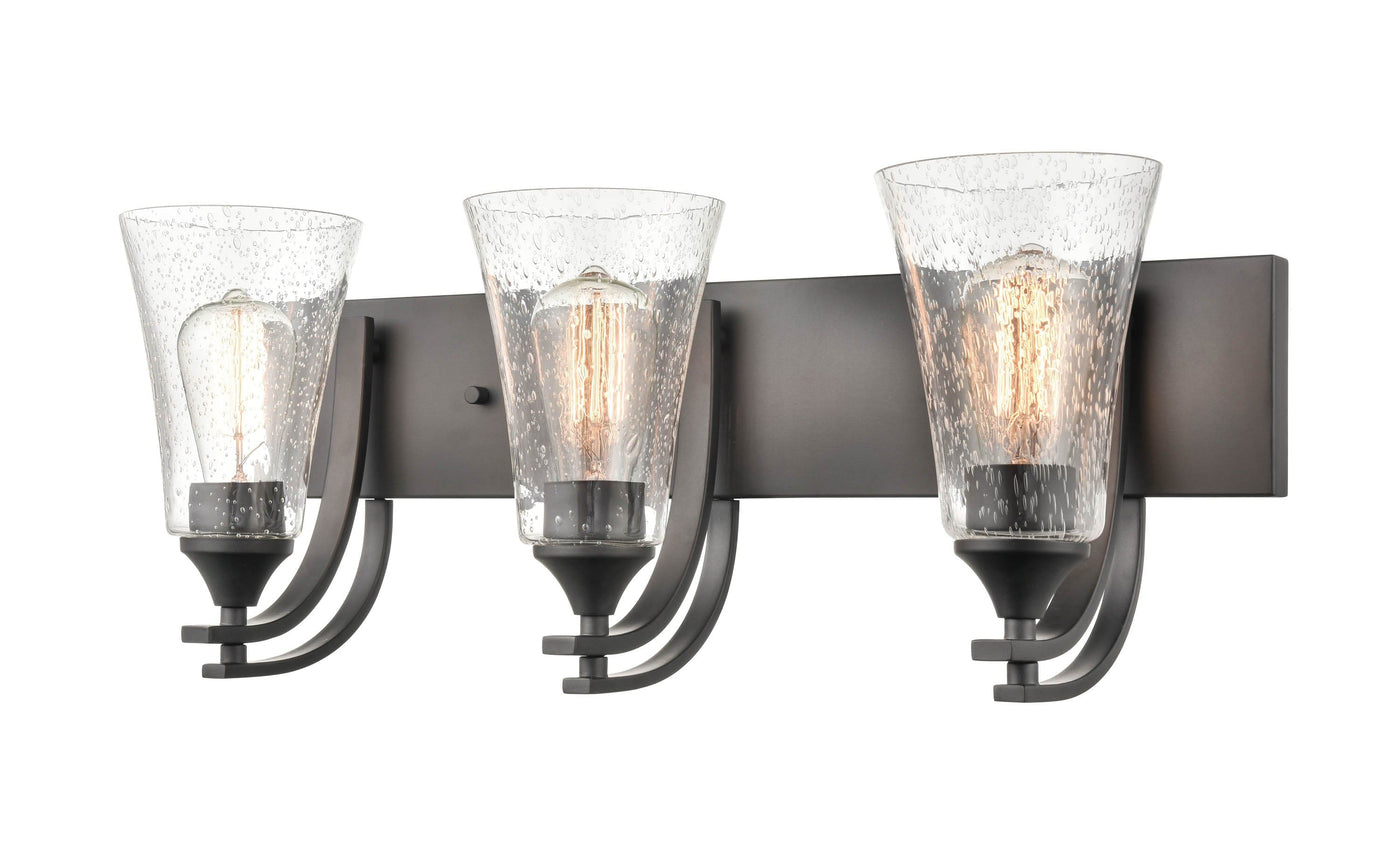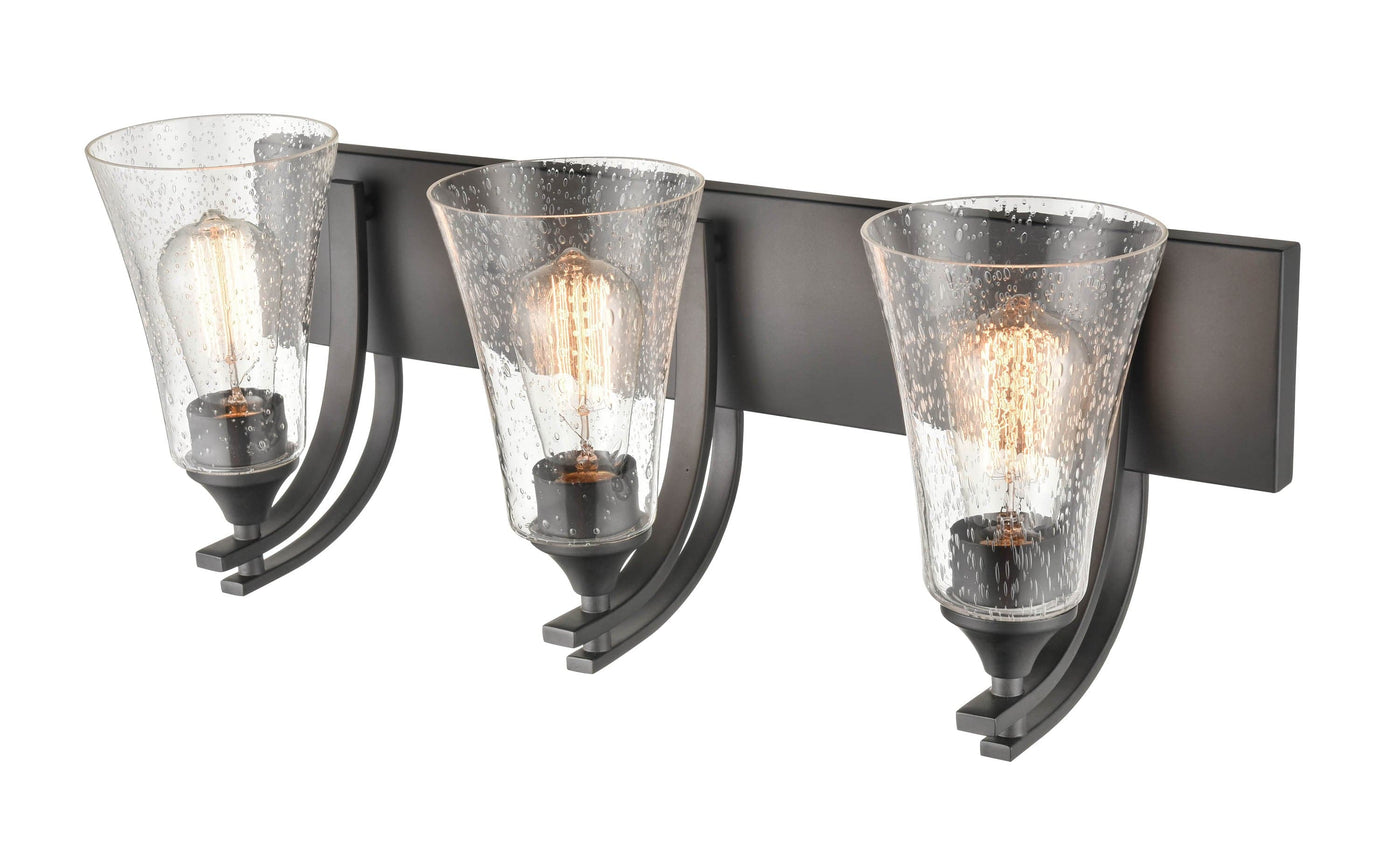 3 Lamps Natalie Vanity Light - Matte Black - Clear Seeded Glass - 24in. Wide